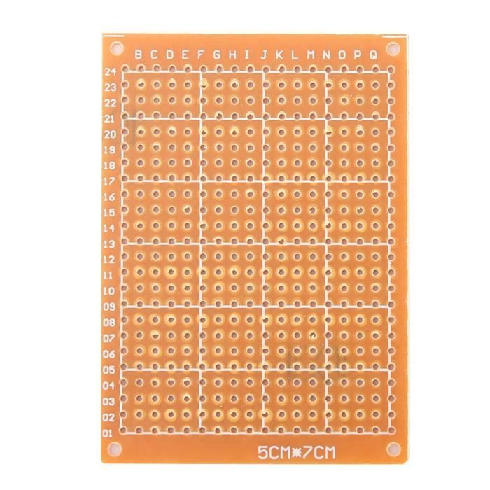 Panneaux à bandes économiques qui peuvent facilement être coupés à la taille souhaitée Plaque circuit imprimé dans autres composants électroniques - Achetez une variété de produits à prix abordables sur . Economisez avec notre option de livraison gratuite Le panneau de bande dispose de pistes en cuivre dans la direction sur toute sa longueur, et est destiné au prototypage, aux tests et à la construction de circuits électroniques. Le panneau à bande dispose de pistes en cuivre dans la direction sur toute sa longueur, et est pour le prototypage, les tests et la construction de circuits électroniques Convient pour la soudure point à point , Quantité : 5 pièces Les trous plaqués sont pré-cuivrés et très solides, ce qui facilite le soudage des composants Nombre de pistes 9 24 36 Nombre de trous : 25, 37, 50., Nombre total de trous : 225 888 1800., Trou : 2,54 mm, 2,54 mm, 2,54 mm., Quantité : 5 pièces. Lot de 10 grilles à 3 bandes 45 x 70 mm 4,5 x 7 cm - Carte de circuit La couleur de l'article peut varier de celle de la photo, en fonction des paramètres d'affichage et de luminosité de votre ordinateur., Merci. Les trous plaqués sont pré-cuivrés et très solides, ce qui facilite le soudage des composants. Merci de ne commander que si vous acceptez cette marge d'erreur. Le panneau de bande dispose de cuivre ininterrompu - pistes dans une direction sur toute sa longueur, et est parfait pour le prototypage, les tests et la construction de circuits électroniques. Les trous plaqués sont pré-cuivrés et très solides, ce qui les rend très faciles à souder des composants. Convient pour la soudure point à point Plaque Bakélite Découpable 25x64mm Lot De 5 Plaques De Circuit Imprimé En Bakélite 150 X 100 Mm Circuit électronique Soudure Point à Point Les mesures étant prises à la main, les tailles indiquées peuvent varier de 0 à 1 cm.