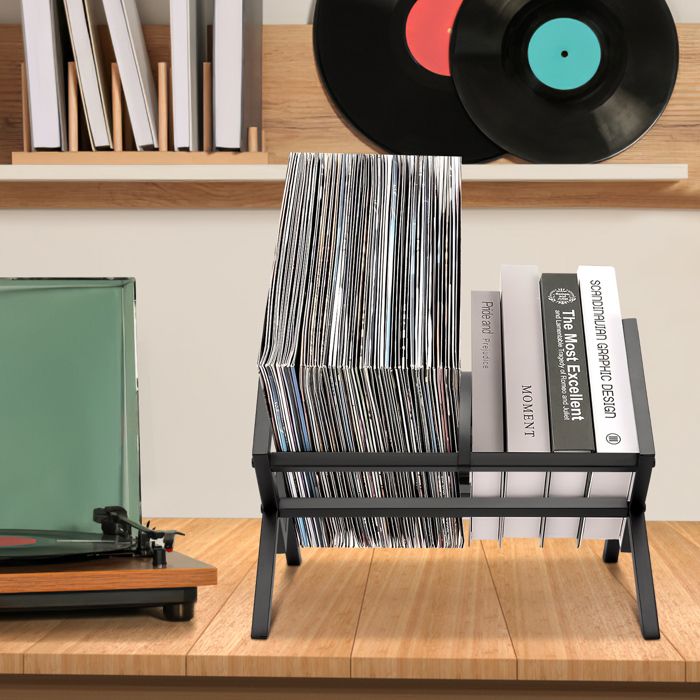 Conservez vos précieux disques en toute sécurité. Bibliothèque Meuble De Rangement Support De Rangement Pour Disques Gardez vos précieux disques vinyles organisés et accessibles grâce à ce support de rangement polyvalent et robuste. Conçu pour durer, il offre un espace de stockage optimal pour vos albums, livres et magazines préférés Points forts du rangement des disques vinyles : Nettoyeur et plus, pour que vous puissiez garder votre collection organisée et facilement accessible. Robuste et durable : Le cadre latéral bolded l'a rendu plus robuste et plus durable que les autres. Optimisez votre espace de manière élégante avec ce support pratique. 【Parfait cadeau pour les amateurs de musique】Le design simple et généreux en fait également une parfaite décoration d'intérieur. Oluote Rangement des disques: Solution élégante et fonctionnelle pour le rangement des disques Un rangement simple et élégant pour les disques, les livres, les magazines et les documents. Support Vinyle RUILALIFE Étagère De Rangement Pour Disques Vinyles 80 à 100 LP - Présentoir En Métal Pour Livres, Magazines, Fichiers Support Rangement Vinyles Facile à monter : Si vous suivez nos instructions, vous pouvez l'installer en 10 minutes. Vous pouvez désormais exposer et profiter de votre rangement de vinyles, sans être enfermé dans une boîte à disques, un meuble à disques, une boîte de rangement ou un coffret à disques. Feuilletez simplement vos albums et choisissez la pièce de votre collection que vous souhaitez apprécier 【Conception compacte, mais grande capacité】 40cm L x 29,5cm L x 30 cm H, peut facilement contenir 80-100 LP. Esthétique et pratique. Conçu pour durer, il offre un espace de stockage optimal pour vos albums, livres et magazines préférés. Gain de place : le design compact le fait bien fonctionner comme stockage de disques vinyles de bureau/sous le bureau. 【Facile à monter】L'étagère à disques est facile à installer, en suivant nos instructions, vous pouvez l'installer rapidement en 10 minutes. Des pinces de séparation vous permettent de classer et d'organiser les enregistrements afin d'éviter qu'ils ne se renversent lorsque votre collection n'est pas entièrement remplie. Offre également un espace pour les accessoires de musique tels que les vestes de disques, Gardez vos enregistrements de collection organisés. Placez-le n'importe où dans la pièce pour un complément parfait.
