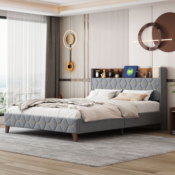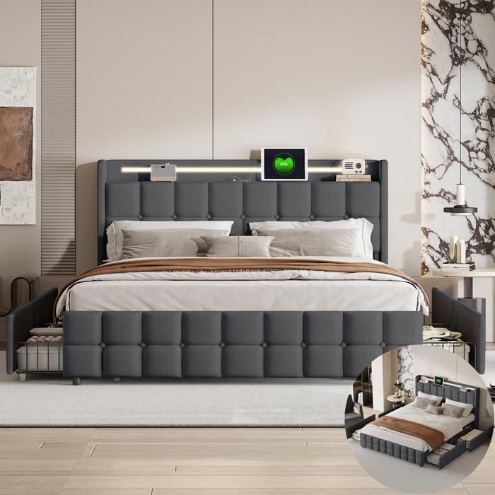 Avec quatre tiroirs spacieux, le lit offre un espace de rangement supplémentaire pour la literie ou les vêtements et vous aide à garder la chambre toujours bien rangée. La lumière LED crée une atmosphère relaxante qui plonge la zone de couchage dans une lumière harmonieuse. Gardez les objets pointus et les outils éloignés lors du montage pour éviter les blessures. Avertissement De Sûreté Assurez-vous de suivre attentivement les instructions de montage pour éviter l'instabilité ou l'effondrement. Le montage est facile grâce aux instructions fournies (français non garanti). Taille. 160x200cm · Dimensions du produit. 2L x 1,6l x 0,29H mètres · Caractéristique spéciale. Port USB, Station de recharge, Tiroir de rangement, À latte... Merax Lit rembourré, 160 x 200 cm, hydraulique, lit Double avec sommier Veuillez noter que la capacité de poids maximale est de 160 kg et évitez de forcer la structure en bois ou les parties en cuir synthétique. Les lattes robustes assurent une répartition uniforme du poids et offrent une base stable pour des nuits reposantes. Le dossier rembourré offre un confort d'assise et de lecture et ajoute une touche luxueuse et intemporelle à n'importe quelle pièce. Contenu de l'emballage : cadre de lit, tête de lit, 4 tiroirs Unités d'emballage : 2 paquets Avec son design bien pensé qui allie fonctionnalité et esthétique, ce lit est le choix parfait pour les chambres modernes. Lit 160x200 Avec Rangement BHFFTHK Lit Double Rembourré, 160 X 200, Espace De Rangement, Avec Lit Design Blanc Rangement USB Led multicolores : bandes lumineuses intégrées pour une ambiance relaxante et personnalisée. Port usb intégré : rechargez vos appareils facilement depuis votre lit, pratique et moderne. Rangement caché : tête de lit coffre hydraulique pour optimiser l’espace de votre chambre Détails du produit : Dimensions : 140 x 200 cm ou 160 x 200 cm (sans matelas) Matériau : cuir PU, bois Couleur : blanc. Le lit est fabriqué en cuir synthétique de qualité supérieure et en bois, conçu en blanc élégant, ce qui ajoute une touche élégante à votre chambre à coucher. Ports de charge : USB et Type-C Assemblage requis : oui. Description du produit Ce lit rembourré moderne allie un design élégant et des fonctions pratiques et est disponible dans les tailles 140 x 200 cm ou 160 x 200 cm. La construction robuste et le design confortable garantissent un sommeil réparateur. Tête de lit LED avec port USB : la tête de lit LED crée une atmosphère détendue et offre un éclairage d'ambiance.