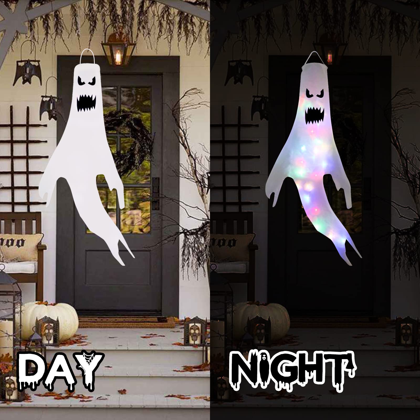 Idéals comme décorations d'extérieur durables, ils ajouteront une ambiance effrayante à votre jardin, cour ou terrasse. Utilisations : Vous pouvez utiliser ces drapeaux de manche à air pour décorer Halloween, les maisons hantées, les fêtes d'horreur et les accrocher sur les couloirs, les cours, les arbres et les rebords de fenêtre pour créer une atmosphère horrible Description du produit Caractéristiques : 1., Créez une atmosphère hantée avec ces manches à air fantômes, un incontournable pour les décorations d'Halloween., 2., Chaque lot comprend 2 décorations fantômes suspendues avec une lumière fantôme intégrée, parfaites pour votre jardin et votre fête d'Halloween., 3., Installez-les facilement comme drapeau suspendu dans votre jardin, votre intérieur, votre terrasse, votre pelouse ou votre maison hantée pour sublimer votre décoration extérieure d'Halloween., 4., Leur design dynamique allie le balancement inquiétant des décorations suspendues d'Halloween à la lueur effrayante des lumières d'Halloween extérieures. Accrochez-les facilement comme drapeau suspendu pour votre jardin, votre intérieur, votre terrasse, votre pelouse ou même pour des scènes de maison hantée. Les manches à air fantômes se balancent au gré du vent tandis que la guirlande lumineuse LED interne alterne entre les modes clignotants, créant un effet envoûtant. 【Décoration de Jardin Lumineuse et Dynamique】 Embellissez votre espace avec ces captivantes décorations de jardin lumineuses. Débranchez l'alimentation en cas de mauvais temps. CIYODO Lot de 2 manches à air fantôme pour Halloween, motif drapeau 【Manche à air Fantômes Effrayants】Ces décorations d'Halloween fantômes arborent des motifs de visages démoniaques. Spécification: Nom du Produit : Manche à Air Fantôme Matériau : Polyester Emballage : 2 Décorations Fantômes d'Halloween à Suspendre Avertissement De Sûreté Pour une utilisation en extérieur uniquement. Les enfants ne doivent pas jouer sur ou près de l'écran. Promo Manche à Air fantôme chez Accastillage Diffusion Manche A Air Décoration D'halloween Drapeaux De Manches à Air Fantômes En Décor Jardin Halloween Installez soigneusement avant de les accrocher pour éviter les chutes.