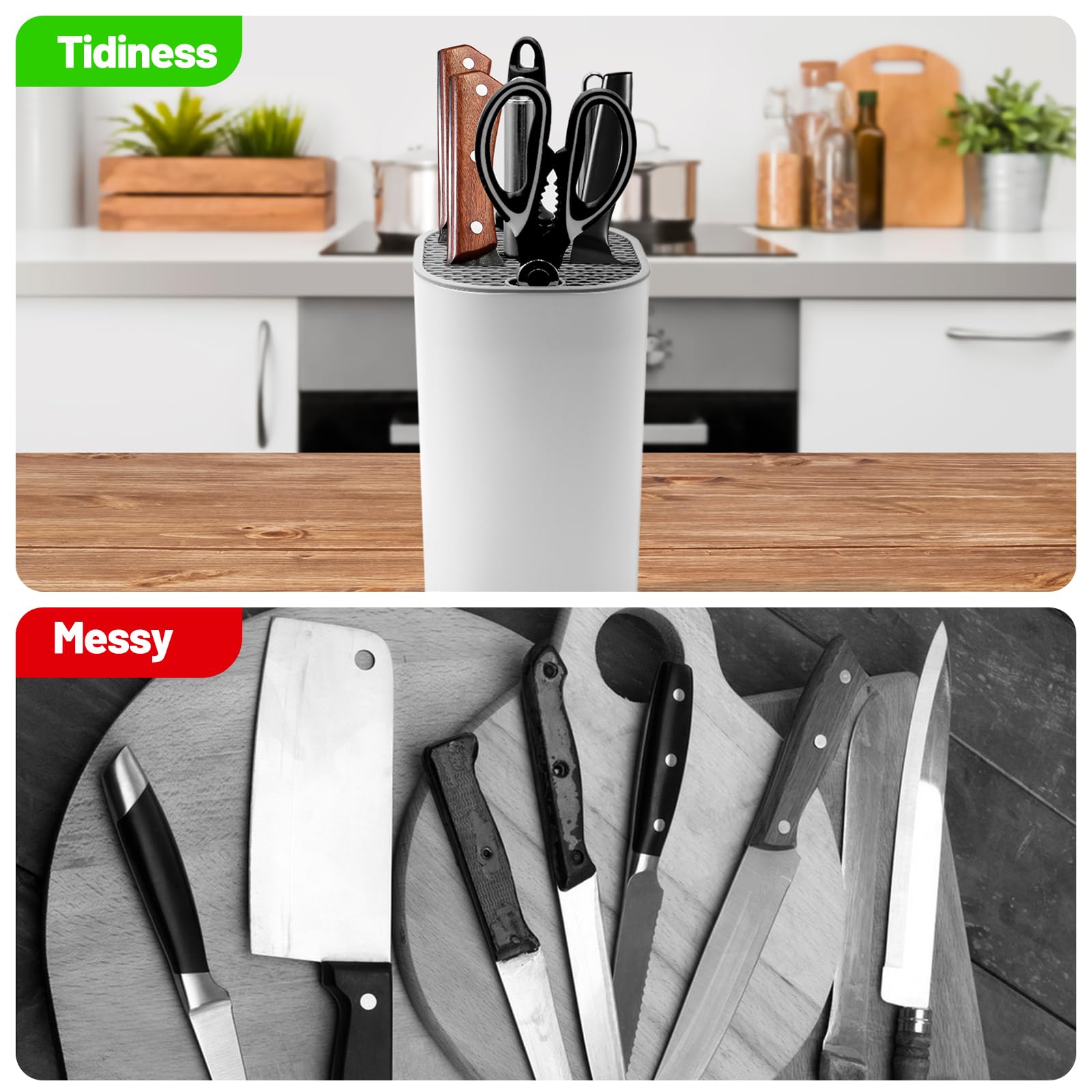 NVGFTG vous fournira une solution fiable dans les 24 heures. 🔪 Le porte-couteaux sans couteau est fabriqué en matériau PP hydrofuge et anti-salissures, plus durable que les porte-couteaux en bois traditionnels. Caractéristiques: Matériau: PP, métal Taille: 22,5 × 14 cm Couleur: Blanc Le Forfait Comprend : 1 × Blocs à Couteaux Vides ✅ Nous nous efforçons de fournir à nos clients des produits de haute qualité. Les rainures uniformément réparties séparent les lames et les empêchent de se toucher et de se rayer. 👍 Avec le bloc à couteaux 2 en 1 vide NVGFTG, vous pouvez ranger vos couteaux de cuisine de manière ordonnée et claire ! YunNasi Blocs Couteaux Vides Acier au Carbone Porte Couteaux de Cuisine Gagnez de la place et profitez d'une grande capacité dans une petite cuisine 【Garde les Couteaux Tranchants】Nous utilisons une conception innovante de rainure de couteau parallèle à double couche. Couteaux Multifonctionnel Ustensiles De Cuisine Support De Rangement Porte-couteaux Bloc Couteaux Cuisine · 34,75 €34,75€ · Livraison GRATUITE 8 - 13 janv. Voir... Porte Couteaux Bloc Couteaux Cuisine En Acier Inoxydable, Range Couteaux Vide Porte Bloc Couteaux Cuisine Vide Tous nos produits subissent un contrôle qualité strict avant expédition. 🔪 Le drainage est simple, l'eau peut être facilement évacuée par le trou inférieur, gardant l'intérieur du porte-couteaux et les couteaux au sec et empêchant l'accumulation de moisissures et de saletés. Joejis Bloc couteaux cuisine universel sans couteaux - Maison 🔪 Maintient vos couteaux en toute sécurité, les maintient stables et empêche tout basculement accidentel. Bloc à couteaux sans couteaux avec fentes de différentes tailles, diamètre maximal des rainures : 13 cm, diamètre minimal : 4 cm, peut facilement organiser et ranger des couperets à viande, des couteaux de chef, des couteaux à steak, des couteaux à pain, des couteaux à fruits et d'autres outils de coupe de cuisine ✅ ✅ Plus de raisons de choisir NVGFTG~ 🔪 La surface mate et l'aspect blanc classique ajoutent de la beauté à vos comptoirs. Vous n'avez pas à vous soucier du basculement du porte-couteau et de la chute du couteau.