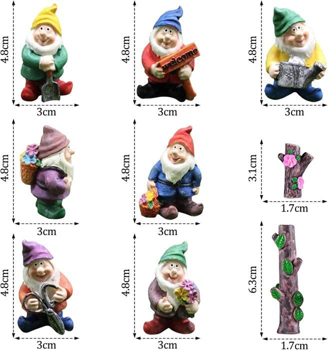 TYXHXTF 4 Pièces Nains de Jardin, Statue de Gnomes de Fée Miniature, Ornements de Figurine de Nain Mignons, pour Décoration de Table et Jardin pour Vacances Livraison GRATUITE pour votre première commande Inclus: Vous recevrez 4 mini statues naines de différents postures, incluant fendu, main levée, dos, zazen, pour décorer vos pots de fleurs et rendre votre jardin intéressant et attrayant. Décoration Extérieure Féerique NIWWIN Statues De , Décoration Artistique De Jardin Extérieur, Figurine De Nain étanche 4 Pièces à Utiliser Dans La Décoration De Nains De Jardin Description du produit En plaçant ces figurines de nains de jardin sportifs dans votre jardin, ils apportent une touche de magie et de plaisir, rendant votre jardin plein de joie enfantine et de surprises. Facile à afficher: Ces statues de gnome sont conçues pour être exposées sans effort, que ce soit dans le cadre d'un schéma de décoration plus vaste ou en tant que pièces autonomes, apportant une ambiance ludique à n'importe quel environnement et invitant à sourire où qu'elles soient placées. Lieu de décoration: Il suffit de placer ces mini statues naines dans votre maison, jardin, bureau, étagère, bureau. Gnomes De Branche En Métal Mignons Nains De Jardin En Fer Statue Décor... Ensemble de nains de jardin miniatures, 4 pièces, décoration de nains de jardin féeriques miniatures, figurines de nains de jardin en corde d'escalade mignonnes, ornements de pelouse, nains d'été En raison de la mesure manuelle, il existe une tolérance dans la taille du produit. Design charmant: Ces gnomes miniatures présentent de délicieux motifs inspirés des fées qui ajoutent une touche de fantaisie à n'importe quel espace, ce qui en fait des accents décoratifs parfaits pour les bureaux, les étagères ou les jardins féeriques qui capturent l'essence du jeu. Convient non seulement pour la décoration extérieure, mais peut également être placé à l'intérieur, comme sur un bureau, dans une chambre, un salon ou comme accessoire de photographie.