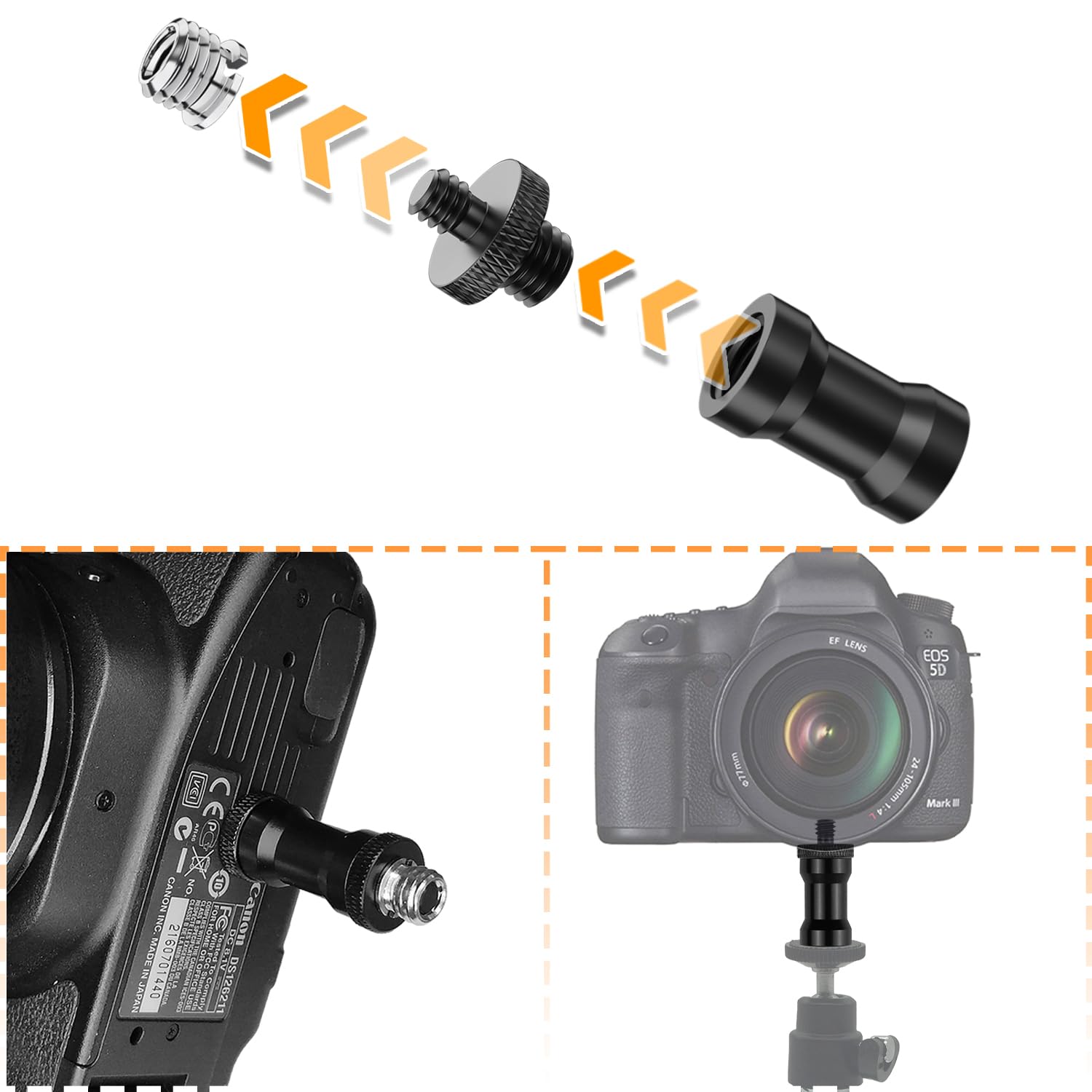 Excellent remplacement pour l'adaptateur en plastique bon marché. Pourquoi acheter ce produit : Si vous avez une sorte de pied de micro ou de bras de perche qui a une petite vis mais que votre microphone a une grande vis, cet adaptateur est fait pour vous. Adaptateur à vis moletée mâle 1,5 cm vers femelle 0,95 cm Un adaptateur de filetage pour fixer un microphone sur un pied de microphone. Vous vous sentirez plus en sécurité en sachant que vous n'avez pas à vous soucier que le fil se casse et que votre micro coûteux tombe et s'abîme. Le diamètre d'un trou fileté 5/8 est d'environ 15 mm. Adaptateur Pied Micro Lot De 5 Adaptateurs à Vis De 1/4" à 3/8" Pour Appareil Photo Reflex Numérique, Caméscope, Trépied, Monopode Adaptateur Moleté Antidérapant Conversion des supports de microphone et accessoires de filetage 5/8 à 3/8. Il est bon d'avoir une forte connexion pour votre micro. Vous pouvez vérifier avant l'achat. Antidérapant, filetage complet et profond sans bavures, pratique à installer, stable et serré. Adaptateur de vis pour caméra : 1/4 vers 1/4 mâle, adaptateur à vis 1/4 vers 3/8 mâle, 6 au total Facile à utiliser : l'adaptateur pour trépied peut être facilement transporté et utilisé sans outils Haute qualité : les vis de 1/4 sont en métal résistant, solide et durable et ne rouille pas facilement Fabrication précise : le filetage de la caméra est clair et facile à... Présentation : C'est un petit adaptateur à vis. Remarque : ne fonctionne pas avec Blue Yeti Nano puisque le trou de vis inférieur du Yeti Nano est de 1/4-20., Contenu : 2 écrous de vis mâles de 1,5 cm à femelle de 9,5 mm Si vous avez une sorte de pied de micro ou de bras de perche qui a une petite vis mais votre microphone a une grande vis, cet adaptateur est fait pour vous. Remarque : La plupart des micros ont un filetage 5/8., Le diamètre d'un trou fileté 5/8 est d'environ 15 mm. Haute qualité : cet adaptateur de caméra 1/4 à 3/8 est bien construit en alliage d'aluminium. La construction en métal robuste assure une longue durée de vie et une utilisation quotidienne fiable Toupie de production 1-1/4 à chariot coulissant 45-610 T4 - Steel City Spécialité – Cet adaptateur de filetage mâle 1,5 cm vers femelle 0,95 cm est conçu pour la plupart des pieds de micro sur le marché, tels que le micro Blue Yeti, le micro Blue Yeti X, le bras Neewer Boom, le micro Blue Snowball Ice Mic, le support de choc Blue Radius III, le Razer Seiren X.