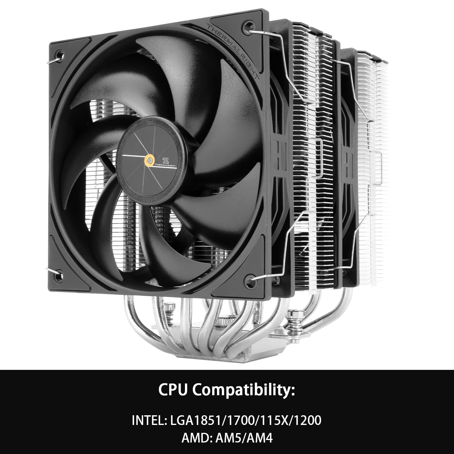Ventilateur pour boitier,Refroidisseur de processeur pour Intel LGA,6 caloducs,ventilateur,PWM,4 Ventilateur PWM 2000 Tr/min ARGB Thermalright BA120 ARGB Refroidisseur D'air Pour Processeur,5 Caloducs - Informatique Thermalright Assassin X 120 Se (Remarque : pour installer la plate-forme AM4/AM5, vous devez utiliser la plaque arrière d'origine de la carte mère pour l'installation., ) [Combinaison de dissipation de la chaleur] Le refroidisseur de processeur est une structure à double tour à double ventilateur, un design asymétrique + 6 caloducs anti-oxydation entièrement galvanisés + soudure par refusion micro-sculptée Seiko avec fond en cuivre nickelé, avec un ventilateur PWM haute vitesse de 2000 tr/min, qui dissipe facilement la température du processeur et la dissipation de la chaleur. Technologie AGHP Heat Pipe : le caloduc de 6 x 6 mm utilise la technologie AGHP améliorée de la 5ème génération, qui peut bien résoudre l'influence de la gravité inversée causée par les directions d'installation verticales et horizontales. Le Thermalright Peerless Assassin 120 SE ARGB associe six caloducs à un éclairage RGB pour un refroidissement efficace du processeur. Ce refroidisseur de processeur fonctionne avec six caloducs de 6 mm qui assurent une évacuation thermique efficace Le brasage par refusion par micro-gravure Seiko à partir de fond en cuivre nickelé, combiné avec des caloducs antioxydants nickelés, de sorte que l'effet de dissipation de la chaleur est amélioré. Refroidisseur De Processeur Gamer AQIRYS AQUARIUS 120 AIO ARGB - NOIR [Large compatibilité] Le refroidisseur de processeur est compatible avec la double plate-forme (Intel 14/15e génération + AM4/AM5RYZEN 9000) Emplacement : Intel LGA 1851/1700/1150/1151/1155/1156/1200 ; AM4/AM5 ; le refroidisseur est livré avec des accessoires de montage conformes à la Vidéo d'installation ou le Instructions d'installation (français non garanti). [Double ventilateur PWM] avec ventilateur double processeur de 120 mm de puissance, jusqu'à 2000 tr/min, grand volume d'air peut apporter un bon effet de dissipation de la chaleur, le ventilateur dispose d'une fonction PWM, en fonction de la température de la carte mère pour ajuster la vitesse, pas besoin de réglage manuel Le crochet de ventilateur fourni peut être accroché en toute sécurité aux tours jumelles pour le refroidissement.