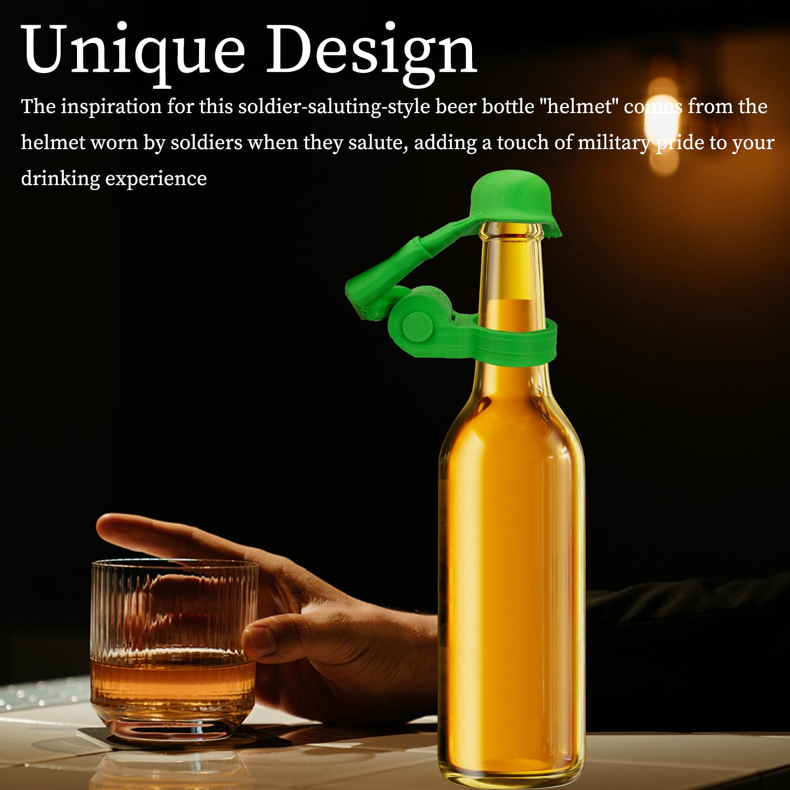 Conçu pour ressembler à un casque de soldat américain avec une pose de salut, ce décapsuleur unique ajoute une touche de fierté militaire à votre expérience de boisson tout en gardant ces insectes indésirables à l'écart lorsque vous ouvrez un froid Utilisé en extérieur, il est idéal pour les barbecues, les pique-niques et les rassemblements, car les boissons ouvertes sont facilement contaminées par les facteurs environnementaux. Accessoire Déco Fête BBQ Rigolo Soldier Salute Casque De Bouteille De Bière, Bouchon De Bouteille De Boisson, Casque De Salut De Soldat, Design Décoratif Amusant, Housse Réutilisable Pour Les Amateurs De Soldats, 8 X 4 X 5,3 Protection Bouchon Bière Anti-poussière 【Matériau durable】Ce décapsuleur est fabriqué à partir de matériaux de haute qualité grâce à une technologie d'impression 3D avancée. Son mécanisme intuitif s'adapte parfaitement à la plupart des bouteilles de bière standard et assure un maintien sûr et fiable. 【Cadeau parfait】Un excellent cadeau pour les amis et les amateurs de bière, offrant un service unique et attentionné tout en enrichissant leur expérience de dégustation avec patriotisme. Couverture de survie réutilisable épaisse Soldier Salute Casque de bouteille de bière, réutilisable, résistant à la poussière, bouchons de bouteille pour barbecue, fête, bar, cadeaux pour vétérans, soldats actifs, amateurs de bière 【Protection anti-poussière】Protège efficacement les boissons de la poussière et de la saleté. 【Installation facile】Aucun outil ni accessoire supplémentaire requis : il suffit de refermer la bouteille. Il est donc réutilisable, durable et facile à nettoyer.