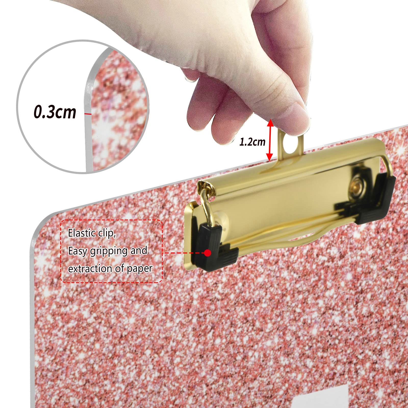 Description du produit Porte-bloc coloré à paillettes - Robuste - Portable - Léger - Décoratif - Mignon - Format lettre standard Holdes Porte-Bloc pour, Porte-Bloc de Rangement Scintillant – Porte-Bloc Tendance à Profil Bas, Chic, léger, Format A4, avec Clip en métal pour, étudiants, Enseignants, Femmes : : Fournitures de bureauDouble espace Motif à paillettes Faites une déclaration avec ce porte-bloc scintillant accrocheur Ses couleurs vives et vives, sa surface antidérapante et son design ergonomique en font un choix confortable pour toute utilisation. Accrochez-le au mur pour économiser de l'espace. Utilisation polyvalente : ce produit est excellent pour les enseignants, les étudiants et les professionnels et peut contenir stylos, crayons, papier, règles et autres accessoires de manière organisée. Accessoire Bureau étudiant Porte-Bloc à Paillettes – Porte-Bloc Scintillant Tendance Porte Bloc à Pince A3 Parfait pour les étudiants, les professionnels et toute personne en déplacement. Porte-bloc extrêmement durable : fabriqué en polypropylène résistant et imperméable, ce porte-bloc à paillettes offre une durabilité exceptionnelle. Grâce à son design incassable, il est adapté à un usage quotidien. Dimensions : 3 14,4 x 9,8 x 1,2 pouces Matériau : ABS Poids : 53 g Présentation : 1 presse-papiers pailleté Carnet De Notes À Paillettes, 1 Bloc-Notes Tendance A5 Brillant Pour Porte-bloc pailleté : démarquez-vous avec style avec ce porte-bloc pailleté! Notre porte-bloc en acrylique offre deux fois la capacité des autres porte-blocs, un design ergonomique et un accès pratique à vos fichiers importants. Ne se plie pas et ne se casse pas facilement, il vous permet également de ranger stylos, crayons, papier, règles, etc. Parfait pour les étudiants, les professionnels et toute personne en...