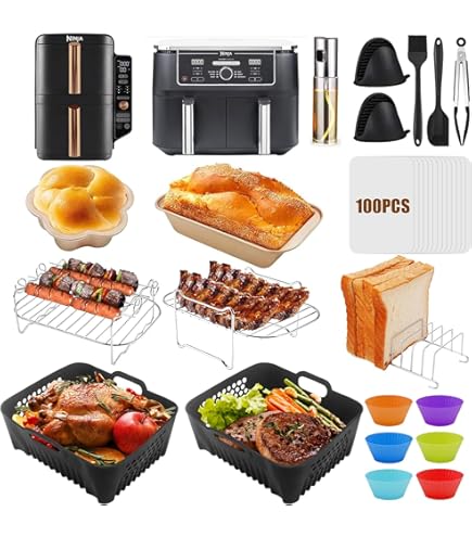 Accessoire Air Fryer Ninja,Moule Silicone Air Fryer Pour Ninja Af400Eu Moule Gaufres Pour Ninja AF400EU AF500EU Set Pour Ninja Foodi Flex 10.4 L Af500Eu, Moule Air Moule Air Fryer Design Optimisé – Avec ses bords plats, ce moule à gaufres évite tout contact avec les parois de l’Air Fryer, garantissant une cuisson uniforme et sécurisée. accessoire air fryer/ moule air fryer/ accessoires air fryer/ air fryer accessoires Poignée centrale pour éviter tout contact avec les parois chaudes – un accessoire Air Fryer plus sûr que les modèles concurrents. Cozary Moule Air Fryer Accessoires pour Ninja AF400EU, AF451EU & AF500EU – Silicone Moule Gaufres pour Gaufres, Compatible Four & Micro-ondes, Lavable au Lave-Vaisselle, 2 Pièces Parfait pour des gaufres croustillantes sans effort ! Moule Gaufre Air Fryer Pour Ninja, Lot De 2 Moules à Gaufres En Silicone Pour Ninja AF300EU, AF400EU, AF451EU, SL400EU, Accessoires Pour Friteuse à Air... Aucun résidu de pâte ou de graisse ne persiste. Un accessoire Air Fryer idéal pour des gaufres bien cuites.