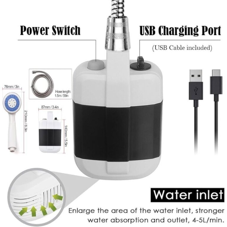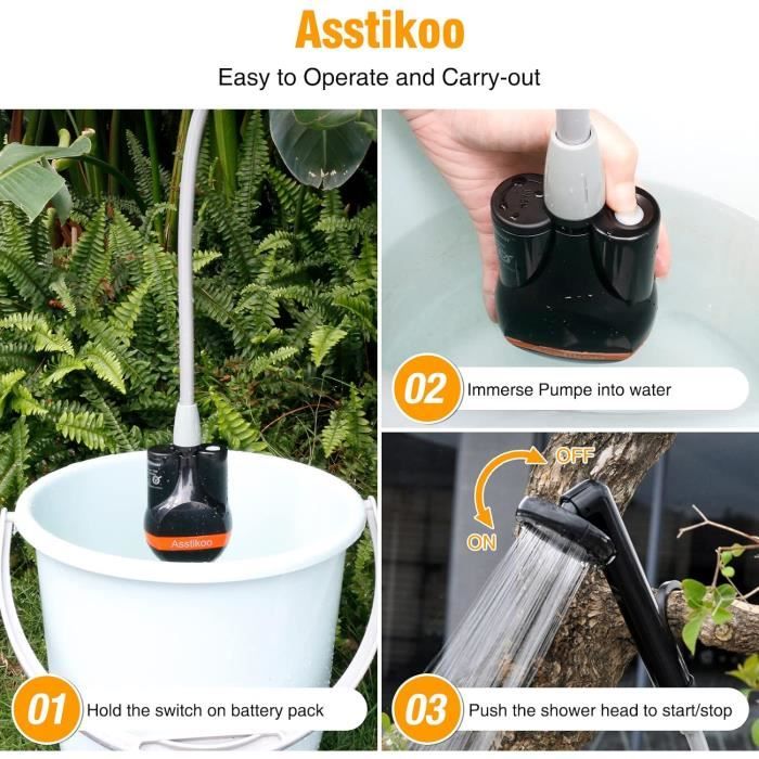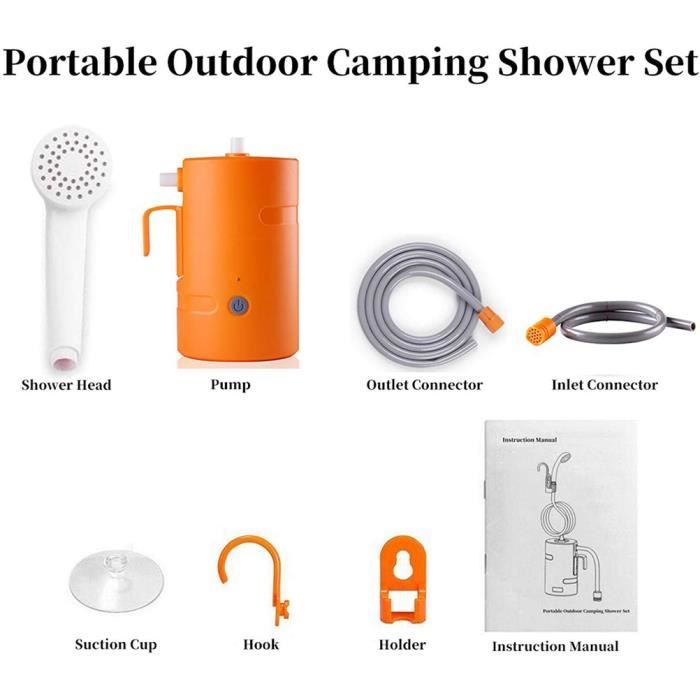 Douche Camping Van Plage Douche Portable Camping Eletorot - Pompe Rechargeable Avec Tuyau 1,8m, Débit 2,5L/min, Pour Outdoor, Van, Plage Nettoyage Animaux Lavage Voiture