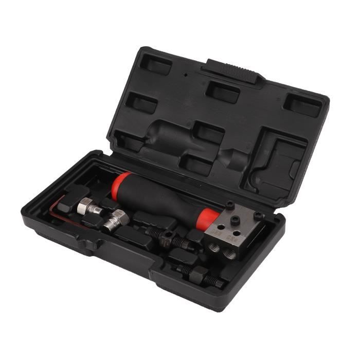 Conception compacte pour les espaces restreints : conçu avec profil bas, cet ensemble d'outils d'évasement est pour les espaces restreints de la voiture, où les outils traditionnels ne conviennent pas. Spécification :Type d'article : Outil d'évasementMatériau : MétalApplication : Outils de réparation automobile universelsListe des paquets :1 x outil évasé4 x accessoires1 x clé hexagonale1 x boîte de rangement Ensemble d'outils haute performance : encapsulant un excellent niveau de performance et une durabilité supérieure, ce kit d'outils d'évasement de conduite de frein de haute qualité est l'outil optimal pour couper et évaser les tuyaux Compatible avec les tuyaux en acier, en cuivre et en nickel de 3/16, cet outil est parfait pour divers projets de système de freinage. Compact et doté d'une poignée amovible, il offre une flexibilité d'utilisation et peut être facilement fixé à un étau d'établi Vous pouvez désormais facilement réparer les conduites de frein sur le véhicule lui-même, économisant ainsi du temps et des efforts. Yosoo Health Gear Kit D'outils De Sertissage De Voiture Dommages et sécurité : la conception unique de l'outil d'évasement maintient solidement le tube centré sans le rayer, ce qui signifie qu'il n'y a pas de rayures ou de dommages au tube. Avec cet outil, vous pouvez effectuer des réparations en toute confiance et sans aucun souci. Outil Réparation Automobile YOSOO Outil D'évasement Ensemble D'outils D'évasement à Cliquet Pour Outil D'évasement Tuyaux Durabilité exceptionnelle : fabriqués à partir d'un matériau métallique solide, les ensembles évasés et les adaptateurs sont conçus pour résister aux lieux de travail difficiles et résister à la rouille et à l'usure. 1., Simple Double Flare : ensemble d'évasements 3/16 po, 1/4 po, évasements doubles et simples conçus pour réduire le risque que le tube glisse de la pince., 2., Conception à profil bas : la conception compacte peut être utilisée dans des espaces restreints de voiture, permettant aux utilisateurs de réparer les conduites de frein sur le véhicule., 3., Dommages : L'outil d'évasement réduit le risque que les pinces glissent hors du tube, maintient le tube bien centré sans le rayer., 4., Matériau : les assemblages évasés et les adaptateurs sont fabriqués dans matériau métallique solide qui résiste à la rouille et à l'usure, ce qui les rend idéaux pour les lieux de travail difficiles., 5., Professionnel : la conception unique verrouille les adaptateurs, le cône et le tube dans une ligne parfaite avec moins de risque de casser les adaptateurs. La butée de profondeur garantit une longueur de tube appropriée.