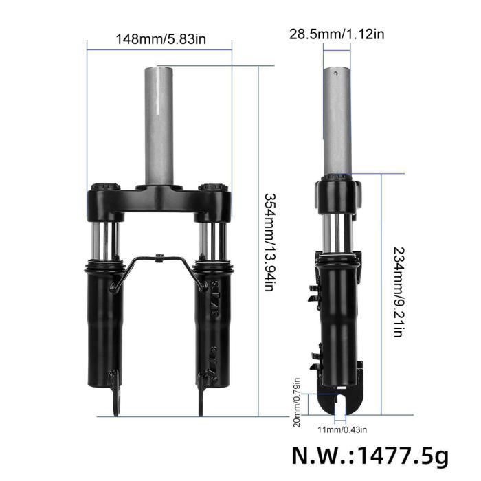【Protection complète】: La conception de garde-boue de haute qualité peut efficacement empêcher la boue et l'eau d'éclabousser, gardant vos vêtements propres et bien rangés, adaptés à toutes sortes de conditions météorologiques. 【Excellente absorption des chocs】 : la fourche avant absorbe les chocs et offre une expérience de conduite plus douce et plus confortable, en particulier lors de la conduite sur des surfaces inégales. 【Support stable】: Il est équipé d'un support robuste et durable qui garantit que la trottinette est stable et fiable, peu importe où elle est garée, de sorte qu'elle peut être facilement garée à tout moment. Garde-boue Béquille Scooter CHFUNE Kit De Fourche Avant De Scooter électrique M365 Garde Boue Le kit de suspension d'amortisseur de fourche avant est compatible avec Xiaomi M365, Pro, Pro2, 1S, Essential Lite, Mi 3. Le paquet comprend 1 fourche de suspension avant garde-boue avant repose-pieds fourche stable arrondie avec manche télescopique en aluminium V-PLAST... SYSTÈME DE SUSPENSION de fourche avant amélioré pour scooter électrique