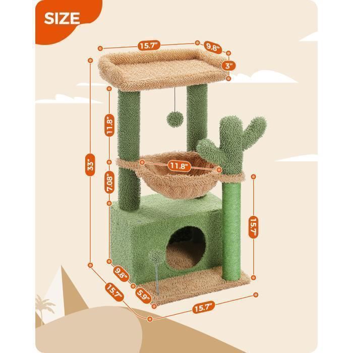 Compact et peu encombrant pour tout type de maison : avec une empreinte petite mais efficace, ce griffoir cactus est parfait pour les appartements, les petites pièces et les espaces adaptés aux chats, offrant une zone de griffage dédiée sans prendre trop de place. Sisal naturel solide pour des griffes saines : fabriqué en sisal naturel de bonne qualité, ce poteau à griffer offre une texture robuste pour que les chats aiguisent leurs griffes, réduisant le risque d'endommager les meubles et favorisant un entretien sain des ongles. Encourage le jeu actif et l'étirement : ce griffoir de 60 cm de haut permet aux chats de s'étirer complètement tout en se grattant, favorisant l'engagement musculaire et réduisant le stress, gardant votre félin heureux, actif et diverti à l'intérieur. Sisal Naturel Entretien Griffes Griffoir Cactus 33 Cm En Jute Naturel, Base Stable Pour Chatons Et Adultes Vert 91643224 Griffoir Chat Cactus Griffoir à chat en cactus naturel 35x34,5x62 cm | Leroy Merlin Arbre a chat en cactus griffoir chat vert fond vert H:53cm - Cdiscount... Griffoir Pour Chat-Griffoir Cactus Pour Chat En Jute Naturel 33cm Design Decoratif Living123 68ac77053c4000d3968de548