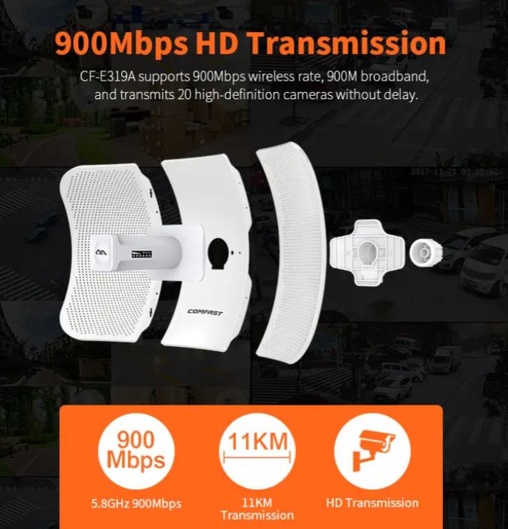 KuWFi Lot de 2 ponts sans fil 300 Mbit/s - Kit de pont sans fil CPE WiFi Point à point d'accès sans fil 2,4 G - Solution de distance de transmission de 1 km pour PTP/PTMP (pré-programme) Visitez la boutique KuWFi 3,9 (1 864) 7899 500 m / 1640 pieds Mode d'alimentation : prend en charge l'alimentation Ethernet POE 24 V et l'alimentation locale 12-24 V 6 W CC liste de colisage : 2 x pont sans fil 2 x adaptateur POE 2 x pince métallique Pont Pour Ascenseurs Pont WiFi Extérieur 5.8G, 3km, 300Mbps, Signal De Routeur, Extension Longue Portée 11dBi, Répéteur Sans Fil CPE, Amplificateur Pour Caméra IP Pont Point à Point Ascenseur Installation et maintenance faciles : voyants d'indication clairs pour l'alimentation, le réseau local, le signal et le canal pour afficher l'état de l'appareil et du signal sans fil, prend en charge la gestion de l'interface graphique Web pour un accès facile à l'état de l'appareil, aux paramètres sans fil, aux statistiques de données, etc. Méthode de pontage : connectez le port réseau du pont principal ou le port LAN de l'adaptateur POE au périphérique de liaison montante (routeur, NVR, commutateurs, etc. ) ou connectez-vous au SSID WiFi depuis le pont, afin que les appareils en aval puissent accéder au réseau via le pont. Achetez Tenda O1 Point d'accès extérieur 300 Mbps Routeur de gestion intelligente longue portée CPE 2.4 GHz PoE Pont sans fil Transmission 8 dBi Étanche et. Trouvez plus de produits 6090301 et profitez de Livraison gratuite dans le monde entier! Vente à durée limitée Retour facile Point d'accès WiFi N 300 Mbps Extérieur (IP65) - TP-Link Spécifications : Type d'article : Pont WiFi Matériau : ABS Tension de la prise : tension large 110-220 V Interface réseau : 1 x 10, 100 Mbps Interface réseau adaptative Protocole : IEEE802., 11AC Taux de transmission : 300 Mbps Distance de transmission : env. Interface réseau unique : équipée d'une interface réseau adaptative 1 x 10, 100 Mbps, prend en charge l'alimentation Ethernet POE 24 V et l'alimentation locale 12-24 V 6 W DC, livré avec un adaptateur d'alimentation POE 24 V 0,6 A standard non standard. Pont sans fil 2,4 G : comprend 2 ponts pouvant être définis comme maître esclave avec une fréquence de 2,4 GHz, débit maximum de 300 Mbps, spécialisé dans les ascenseurs, distance de transmission jusqu'à 500 m, adapté aux ascenseurs dans un rayon de 20 étages, couplage facile avec affichage numérique, simple et efficace., installation., 1., Pont sans fil 2,4 G : comprend 2 ponts pouvant être définis comme maître esclave avec une fréquence de 2,4 GHz, débit maximum de 300 Mbps, spécialisé dans les ascenseurs, distance de transmission jusqu'à 500 m, adapté aux ascenseurs dans un rayon de 20 étages, couplage facile avec affichage numérique, simple et efficace., configuration., 2., Interface réseau unique : équipée d'une interface réseau adaptative 1 x 10, 100 Mbps, prend en charge l'alimentation Ethernet POE 24 V et l'alimentation locale 12-24 V 6 W CC, est livrée avec un adaptateur d'alimentation POE 24 V0,6 A standard non standard., 3., Installation et maintenance faciles : des voyants d'indication clairs pour l'alimentation, le réseau local, le signal et le canal pour afficher l'état de l'appareil et du signal sans fil, prend en charge la gestion de l'interface graphique Web pour un accès facile à l'état de l'appareil, aux paramètres sans fil, aux statistiques de données, etc., 4 .