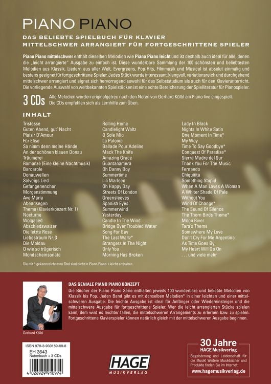 Spielbuch für Keyboard und Klavier von Bert Pfefferkorn - Buch Piano Piano Classic mittelschwer, Exclusive QR-Codes: Das beliebte Spielbuch für Klavier für fortgeschrittene Spieler - Mit 100 Hörbeispielen über QR - Code : Kölbl, Gerhard, Thurner, Stefan, Hage, Helmut Die Stücke sind interessant, variationsreich und durchgehend mittelschwer arrangiert. Sie eignen sich hervorragend sowohl für das Selbststudium als auch für den Klavierunterricht Sie eignen sich hervorragend sowohl für das Selbststudium als auch für den Klavierunterricht. Alle Melodien sind als Lernhilfe zum Üben oder zum Anhören über die QR-Codes abspielbar und wurden originalgetreu nach den Noten von Gerhard Kölbl am Piano live eingespielt