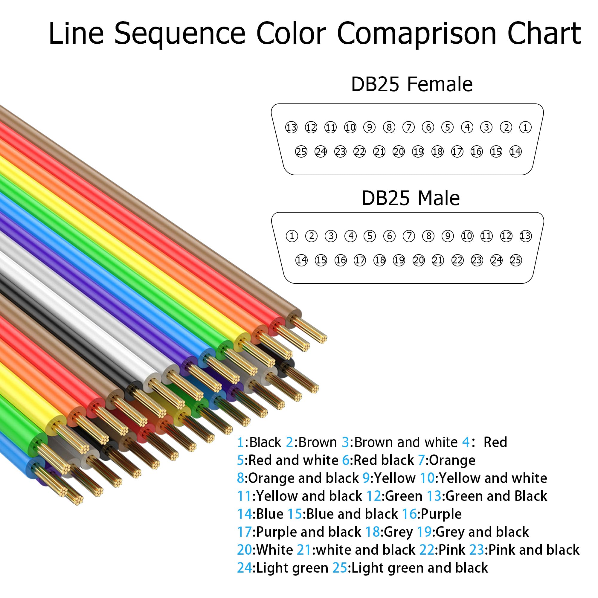 Câble d'extension série RS-232] Connecteur DB 25 broches, avec deux connecteurs femelles DB25 aux deux extrémités, permettant de connecter un ordinateur à un appareil équipé d'un port de communication série RS-232 (COM Les vis aux deux extrémités assurent une connexion sûre et fiable. Connecteur 25 Broches Nickelé JSADZKJ Câble D'extension Série Db25 RS232 Mâle à Mâle Câble Série D - Sub Connecteur 25 Broches RS232 Câble Passe - Partout Série Pour Imprimante Cable Dce 25 Broches Connecteur 1: db25 Serial mâle Connecteur 2: db25 Serial mâle Surface de l'interface: nickelé Matériau conducteur: cuivre sans oxygène Blindage: feuille d'aluminium Gaine: PVC isolé Longueur de ligne: 1., 6ft (50cm) Couleur: couleur Le forfait comprend: 1x câble de port série RS232 25pin connecteur Fabriqué avec des matériaux de haute qualité, il est suffisamment durable pour résister à une utilisation quotidienne. 【High Quality Construction】Le connecteur DB25 mâle-mâle présente une interface nickelée, des bornes en cuivre sans oxygène et un blindage en feuille d'aluminium pour une transmission optimale du signal, réduisant ainsi le risque de perte de données ou d'interférences. Le câble série DB25 mâle-femelle connecte l'ordinateur à des appareils avec ports COM compatibles RS232. Convient pour les PLC, PDA, imprimantes, enregistreurs de caisse de supermarché, équipements d'automatisation, modems, outils de communication, etc XMSJSIY Adaptateur de connecteur DB25 Câble d'extension série RS232 à 【Widely Used】DB 25 serial cable provides high performance connection between PC and RS232C devices. Le câblage broche à broche est un câble COM DB25 RS232 droit : les 25 broches sont connectées directement via 1-1, 2-2-3, ., ., ., ., ., ., ., Connexion directe séquentielle 24-24, 25-25, g-g. Câble d'extension série RS-232】 Connecteur DB 25 broches avec connecteurs mâles DB25 aux deux extrémités est utilisé pour connecter un ordinateur à un appareil doté d'un port de communication de données série RS-232 (COM).