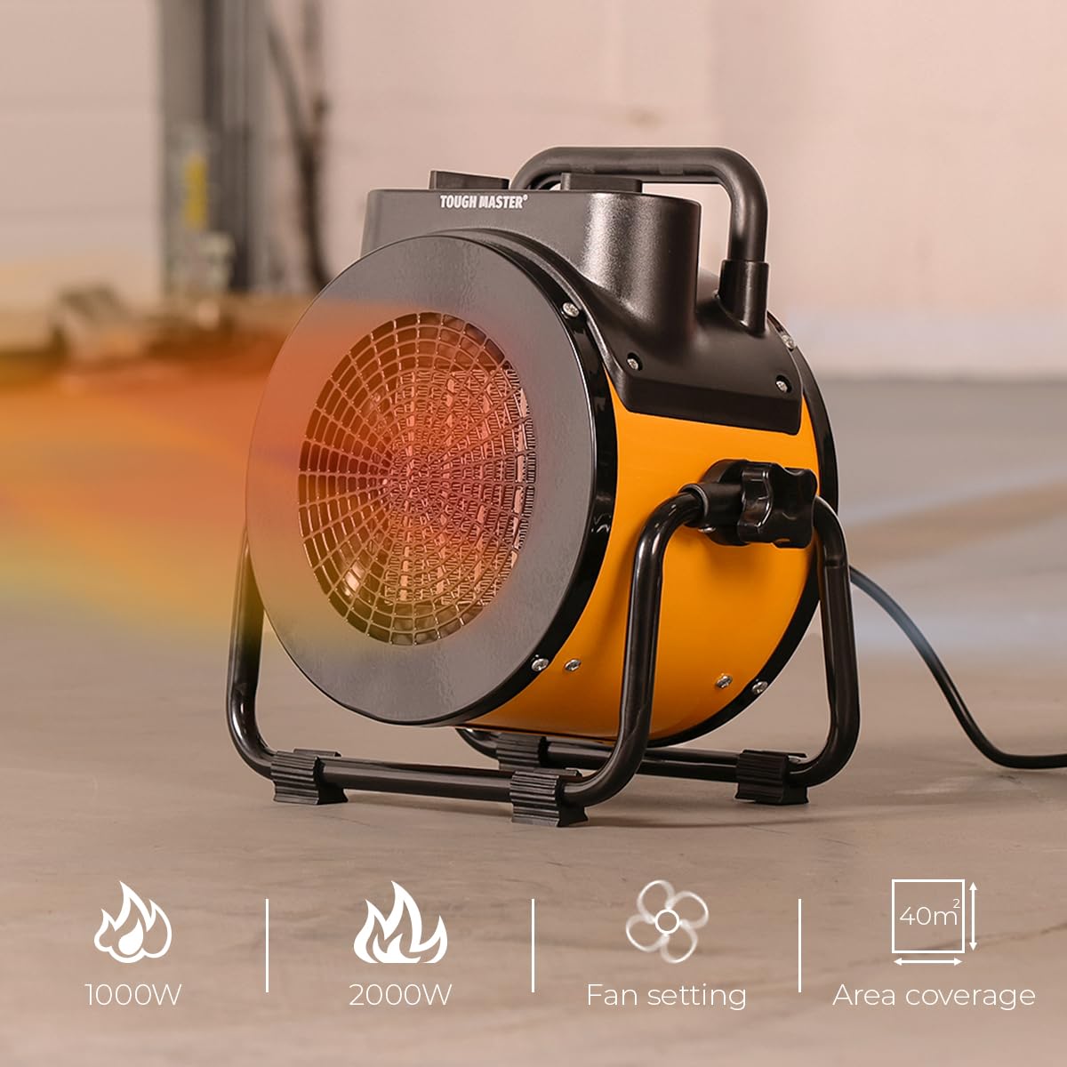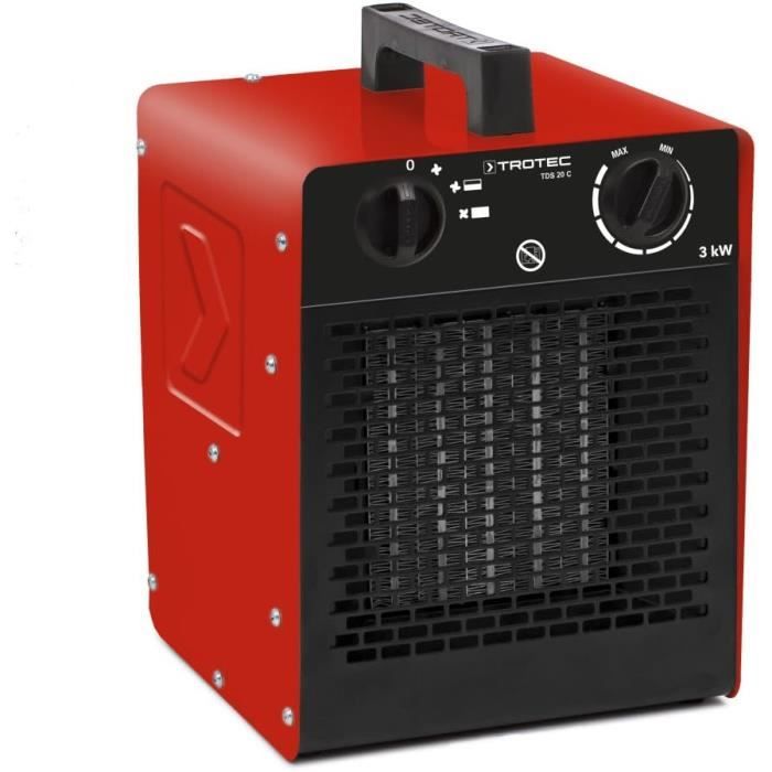 Haute performance : ce radiateur soufflant industriel en céramique dispose de deux niveaux de chauffage, 1000 W et 2000 W, ainsi que d'un réglage du ventilateur. Le thermostat réglable peut être réglé sur une variété de températures de chauffage : cette polyvalence fait de ce radiateur soufflant d'atelier le choix idéal pour toute l'année. Notre radiateur soufflant en céramique est équipé d'un dispositif de protection automatique contre la surchauffe: si ce radiateur soufflant industriel portable devient trop chaud pour une raison quelconque, le dispositif de protection automatique contre la surchauffe éteint le radiateur soufflant. Fonctionnement silencieux : les radiateurs en céramique fonctionnent silencieusement et efficacement. Les pieds en plastique du radiateur soufflant assurent un positionnement stable et sans rayures. Chauffage Avec Thermostat Réglable Chauffage Industriel Céramique 2000 W - Compact - Thermostat Réglable Chauffage Atelier Chauffage rapide : l'élément chauffant en céramique de ce ventilateur portable chauffe en quelques secondes, sans condensation, sans fumée et sans odeur. L'angle de la direction de chauffage peut également être ajusté. Ce radiateur soufflant industriel / petit radiateur soufflant d'atelier convient aux garages, ateliers, chantiers de construction, etc. La poignée de transport a une poignée de transport en plastique et tient confortablement dans la main. Avec une puissance de chauffage maximale de 2 kW, cet appareil offre une solution efficace pour chauffer des ateliers, des entrepôts ou des chantiers. Le... Ce radiateur soufflant de 2 kW a deux niveaux de chauffage, 1000 W ou 2000 W ; le ventilateur aide à diffuser l'air chaud dans la pièce ; ce réglage du ventilateur peut également être utilisé pour le refroidissement. Donc, si vous êtes à la recherche de chauffages industriels / chauffages en céramique, vous voulez un chauffage sûr, silencieux, puissant et portable : le TM-CFH201N de TOUGH MASTER. Cela signifie que vous pouvez profiter de la chaleur sans aucun désagrément. Ce radiateur soufflant TOUGH MASTER 2 kW dispose d'une large poignée de transport pour que vous puissiez le transporter là où vous avez besoin de chauffage. Chauffage industriel 2000 W avec céramique PTC, 3 modes (ventilateur, 1000W, 2000W), thermostat réglable, angle ajustable, sécurité surchauffe. Idéal chantier ou atelier NEO TOOLS CHAUFFAGE ÉLECTRIQUE INDUSTRIEL ÉLÉMENT CHAUFFANT EN ACIER INOXYDABLE INOX - 2 KW Ipx4 90 067 38786121 Le ventilateur peut être utilisé séparément pour le refroidissement, ce qui signifie que ce radiateur soufflant de 2 kW peut être utilisé toute l'année.