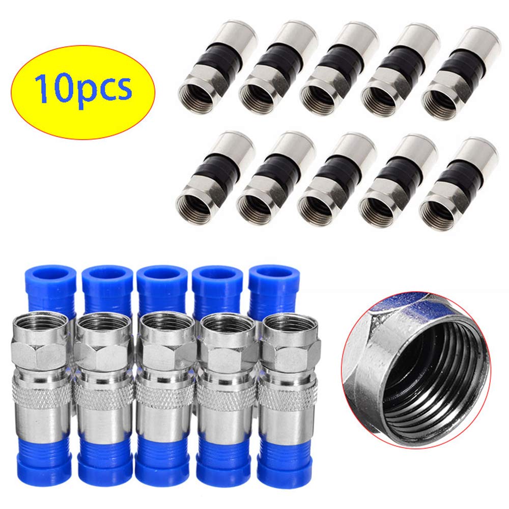 10 x RG6 F Coaxial Type 75-5 Compression Connector for RG6 Connecteur Coaxial IDEAL CONNECTEURS À COMPRESSION RG6 | Home Depot Canada Connecteur Compression Câble Coaxial Dispose d'un manchon en plastique couplé facile à utiliser, pré-positionné et amovible. Glissez simplement sur un câble RG6 dénudé et préparé et compressez avec un outil de compression. Diamètre : environ 1 cm. Achetez des connecteurs F à compression RG6 de haute qualité pour des connexions de câbles coaxiaux fiables. Profitez de solutions durables, efficaces et abordables pour vos besoins de télévision et d’Internet Quantité : 10 pièces/1 lot. Caractere: La compression radiale à 360 degrés offre des performances et une intégrité supérieures, Il suffit de glisser sur un câble RG6 dénudé et préparé et de le compresser avec un outil de compression. Contenu du Package: 30 connecteurs de compression de type F pour RG6 Contenu de l'emballage : 10 connecteurs de compression. Pour une utilisation avec le câble RG6 Quad Shield (ne convient pas pour les câbles à double blindage) Caractéristiques : Longueur : environ 2,8 cm.