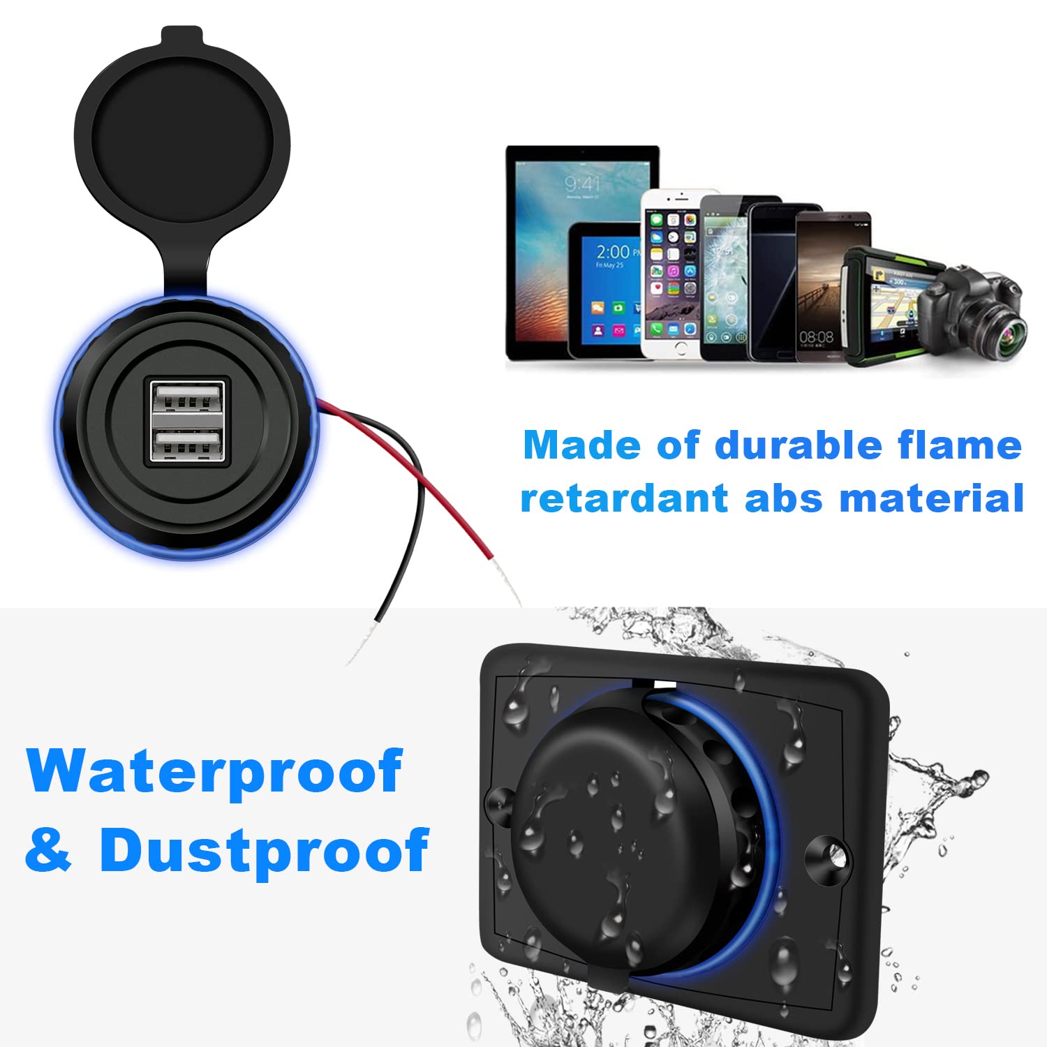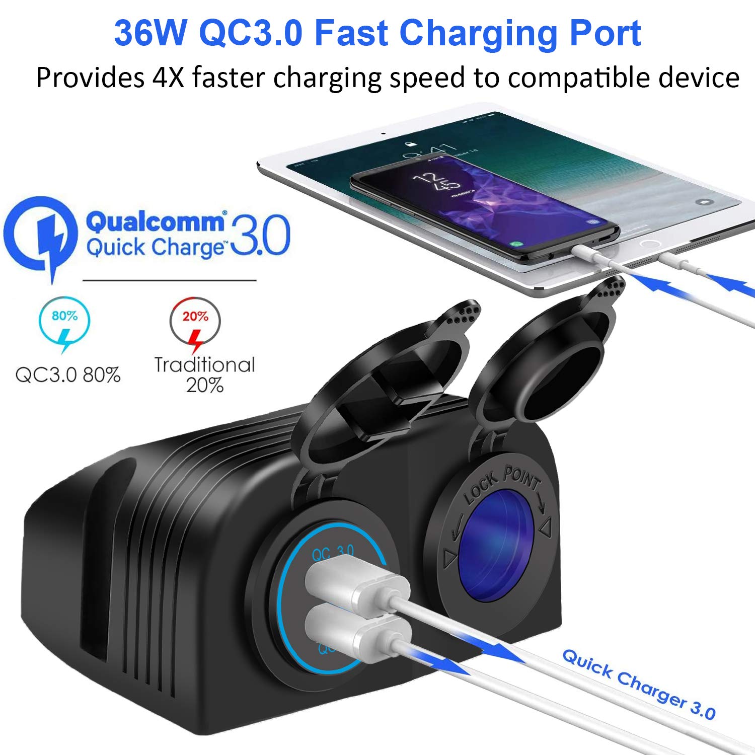Prise Usb Chargeur De Voiture Double USB 3.1A, 2 Ports, écran LCD, 12-24V Allume Cigare