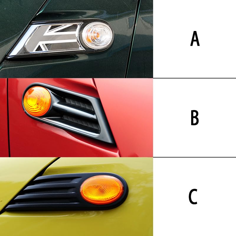 Coque Abs Couleur Style Compatible Avec Les Accessoires Mini Cooper - Décoration Pour Compatible R55 Clubman R56 R57 2006-2014 - Plastique ABS de qualité automobile à fort impact, ce qui signifie qu'il a une meilleure résistance à l'usure, au vieillissement, léger et extrêmement durable qui résistera aux intempéries et aux environnements difficiles. Facile à installer : pas de découpe ou de perçage nécessaire, il s'installe facilement avec du ruban adhésif double face pré-appliqué. Bienvenue dans notre boutique. Il s'agit d'une housse de décoration Veuillez retirer le film protecteur des produits après l'installation Veuillez confirmer votre modèle de voiture avant d'acheter pour éviter les erreurs d'achat. Ce produit n'est pas un produit de remplacement et ne peut pas remplacer les pièces d'origine. Informations sur le produit : Compatible avec Mini Cooper : R55 Clubman 2006-2014., R56 Berline 2007-2013., R57 Cabriolet 2007-2015., - Cette coque de protection pour feux de direction extérieurs pour garde-boue est disponible en plusieurs couleurs. Accessoires Mini Cooper R55 R56 R57 Design unique et élégant parfait pour votre véhicule, améliore la superposition de l'apparence du véhicule, rendant votre véhicule plus attrayant. Pack Clignotants arrière à leds pour Mini Cooper II (R50 / R53 C'est la destination de vos besoins, et nous vous servons de tout cœur. - Couvre les rayures disgracieuses existantes et protège la finition des rayures. Coque de protection pour feux extérieurs Fender fabriquée en pâte d'acrylonitrile butadiène styrène de haute qualité. Collez-le, il vous aidera à couvrir les marques laissées par les rayures et les collisions. - Si votre voiture a été rayée. Merci de votre visite Personnalisez ou rajeunissez votre Mini avec nos différents clignotants et répétiteurs. Nous proposons divers coloris (blanc, noir, fumé, chrome) et type (halogène, led) pour modifier l'apparence de votre Mini Protège le clignotant extérieur Fender d'origine contre les rayures et les collisions, ce qui peut couvrir les rayures existantes. Compatible avec Mini Cooper R55 Clubman R56 Hatchback R57 Cabriolet 2006 2007 2008 2009 2010 2011 2012 2013 2014