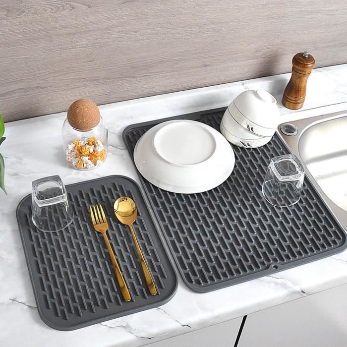 Améliorez votre routine en cuisine avec un tapis de séchage conçu pour un excellent drainage. Le tapis de séchage pour vaisselle est conçu pour améliorer l'organisation de votre cuisine et salle de bain grâce à sa fonction d'évacuation rapide. Ce tapis polyvalent sert de doublure ou de protection fiable pour vos plans de travail et égouttoirs, des surfaces sèches et propres Sa texture unique en forme d'arête de poisson favorise un écoulement de l'eau tandis que la base antidérapante assure stabilité. Conservation aisée par enroulement compact ou accrochage mural, éliminant tout désordre dans votre espace de préparation. Utilisations variées : Supporte bols, assiettes, baguettes, cuillères et fourchettes. Tapis égouttoir Compact Pliable Tapis De Séchage Pour Vaisselle En Silicone - Noir - 6.00 Accessoire Cuisine Drainage Eau 38x25 Cm Fabriqué en silicone alimentaire, il est sûr pour une utilisation quotidienne. Protection Stabile : anti-dérapante empêche tout glissement de vaisselle, maintient le plan de travail intact et offre des performances pour les tâches quotidiennes avec une stabilité constante Résistance thermique optimale : Fabriqué en silicone grade alimentaire, ce tapis assure une résistance thermique prolongée et une robustesse exceptionnelle pour un séchage de la vaisselle au quotidien sans déformation ni altération des propriétés matérielles Le design pliable facilite le rangement et économise de l'espace. Lot de 2 tapis de vaisselle en Siliconen pour éponges, pinceaux, évier En raison de la différence de mesure manuelle, veuillez permettre une différence de taille de 1 à 3 cm. Aide Hygiénique Pratique: Ces tapis de séchar vaisselle permettent de maintenir une cuisine plus propre en éliminant rapidement l'eau des plats, bols et ustensiles de cuisine lavés, créant un espace de travail plus agréable et fonctionnel r les tâches quotidiennes