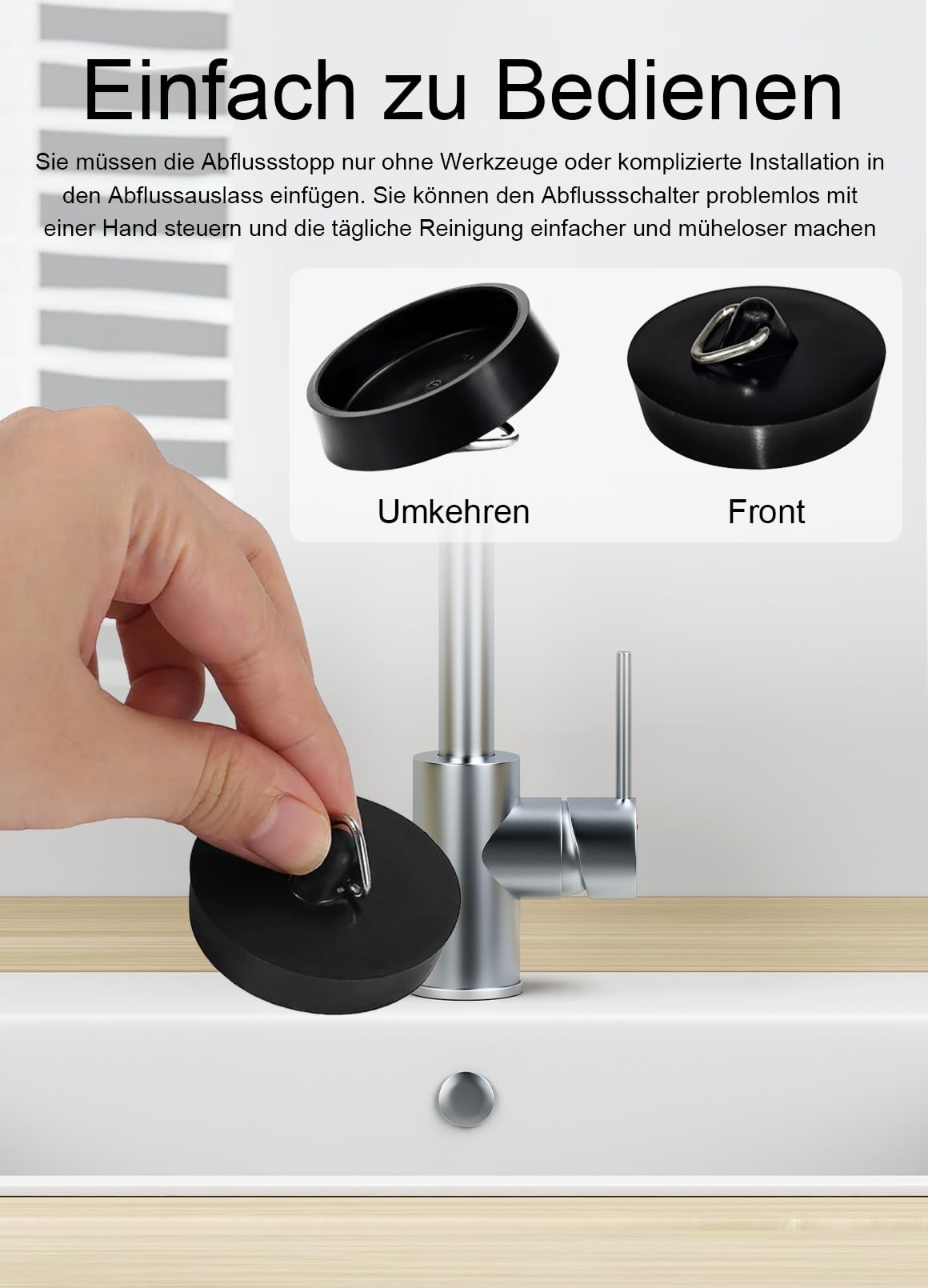 ne pas bloquer l'égout et réduire les problèmes de nettoyage. Bouchon Lavabo Salle De Bain Bouchon De Vidange Universel En Le bouchon de vidange est fabriqué en caoutchouc de haute qualité, durable, a une longue durée de vie, est non toxique et sans goût, ce qui empêche les fuites de couler Durable et final : les bouchons d'eau en caoutchouc ont une résistance élevée à l'usure et ne seront pas faciles à porter ou à casser et ont une longue durée de vie. Cela évite que les fuites ne coulent. Convient pour tout type d’évacuation : Bain, lavabo, douche, baignoire en plastique, en métal ou en céramique. Facile d'utilisation : Il suffit de le poser à plat sur n'importe quelle évacuation, il sera automatiquement aspiré et évitera les fuites Fonction anti-blocage : le bouchon de vidange de cuisine peut intercepter de gros déchets tels que les restes alimentaires, les feuilles de légumes, etc. Spécifications du produit : emballage : 2 pièces Longueur : 4 cm Matériau : caoutchouc Poids : 27,1 g Utilisations : ce bouchon de cuisine est facile à utiliser, facile à installer, bien bloquable, résistant à l'usure et anti-vieillissement, étanche, adapté pour la cuisine, la baignoire, les toilettes et d'autres endroits. Bouchon Douche Anti Odeur 45.5 Mm - Bouchons De Vidange'évier En Caoutchouc, 1 Pièce, Bouchon De Stop évier Anti Débris