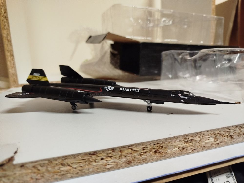 Avion Reconnaissance Stratégique Miniature Modèle D'avion US Lockheed SR71 SR-71 Blackbird 06937 En Métal Moulé Modèle SR-71 échelle 1/144 Il peut être placé sur un bureau, une vitrine ou un bureau, et il peut devenir un accroche-regard. SR-71 Blackbird: Déjenos mostrarle el avión más rápido de la Tierra... Décoration et cadeau uniques : ce kit de modèle de reconnaissance SR-71 Blackbird en métal moulé sous pression est non seulement un bel artisanat, mais peut également être utilisé comme décoration et collection Le fuselage métallique de ce modèle SR-71 Blackbird est robuste et durable, avec un véritable sens du poids et du toucher, montrant une texture exquise. Achat sans soucis : ce kit de modèle SR-71 Blackbird 1/144 utilise une boîte en papier robuste et durable comme emballage extérieur pour garantir que le modèle est entièrement protégé pendant le transport pour éviter les dommages. Moteur d'un avion de reconnaissance stratégique Lockheed SR-71A Le kit de modèle d'avion Blackbird SR-71 1/144 est très approprié pour les amateurs de militaires et les collectionneurs de modèles à collectionner ou à offrir en cadeau. Ce modèle restaure avec précision les détails du fuselage SR-71, en utilisant des matériaux en plastique ou en alliage de haute qualité, et présente un revêtement noir classique résistant à la chaleur. Chaque détail a été soigneusement conçu. Matériau : le modèle d'avion Blackbird SR-71 est fabriqué en matériaux métalliques de haute qualité et raffiné avec une technologie avancée de moulage sous pression, qui reflète pleinement la combinaison parfaite de haute qualité et d'excellents savoir-faire. Qu'il s'agisse d'un affichage statique ou d'un gros plan, les gens peuvent ressentir le charme technologique du modèle SR-71 Blackbird. Décoration et cadeau uniques : ce kit de modèle de reconnaissance SR-71 Blackbird en métal moulé sous pression est non seulement un bel artisanat, mais peut également être utilisé comme décoration et collection. Le processus de moulage sous pression garantit la structure précise du kit de modèle d'avion SR-71 Blackbird en métal moulé sous pression. Certaines versions sont équipées de trains d'atterrissage mobiles, de détails de cockpit et de présentoirs, adaptés pour les amateurs militaires, les collectionneurs de modèles d'aviation ou les présentoirs éducatifs.