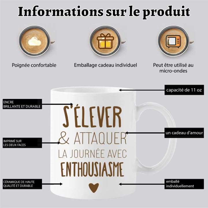 Personnalisation unique : Cette tasse peut être personnalisée avec le nom, les initiales, un texte ou une photo de votre choix, permettant de créer un design unique et significatif pour chaque utilisateur. Créez votre mug personnalisé avec vos s et textes ☕ Offrez comme cadeau original et personnalisé, une belle tasse 100% personnalisée Découvrez la tasse personnalisable loongway, un mug unique qui vous permet d'imprimer une photo spéciale, un nom ou un message personnalisé pour en faire un cadeau idéal pour toutes les occasions. Son design adaptable en fait un présent apprécié pour diverses occasions festives, notamment les fêtes d'Halloween, les anniversaires, ou comme attention pour renforcer les liens. Design et matériaux de qualité : La tasse présente une finition intérieure lisse et brillante, facilitant le nettoyage, tandis que son revêtement extérieur permet une impression personnalisée nette et vibrante. La poignée est conçue pour un confort maximal, permettant une prise en main naturelle et sécurisée. Fabriquée en céramique robuste, elle assure une durabilité à long terme et une utilisation sans souci au quotidien, que ce soit à la maison ou au bureau. Tasse Café Incassable 240 Ml | Objet personnalisé Goodies... Que ce soit pour Halloween, un anniversaire, ou simplement pour offrir à un ami, un parent ou un collègue, cette tasse en céramique de haute qualité allie fonctionnalité et élégance. Tasse personnalisée photo - 3 photos Tasse Personnalisable Mug Personnalisé Photo | Photo | Tasse Personnalisée Avec Photo/Texte, Mugs Et Tasses à Café Mug Personnalisé Cadeau Personnalisé Cadeau Femme Anniversaire, 325ml (Style 1 Tasse Futur Papa Fête Des Pères Fonctionnalités pratiques : Dotée d'un fond antidérapant, cette tasse reste stable sur toutes les surfaces, réduisant les risques de renversement. Le fond antidérapant garantit une stabilité optimale, évitant les renversements accidentels sur votre bureau ou à la maison. La paroi épaisse de la tasse assure une isolation efficace pour profiter de votre café, thé ou chocolat chaud en toute sécurité, sans risque de brûlure. Personnalisez-la avec une image mémorable, des initiales ou un texte significatif pour créer un objet unique qui reflète votre attention aux détails. Fabriquée en céramique durable.