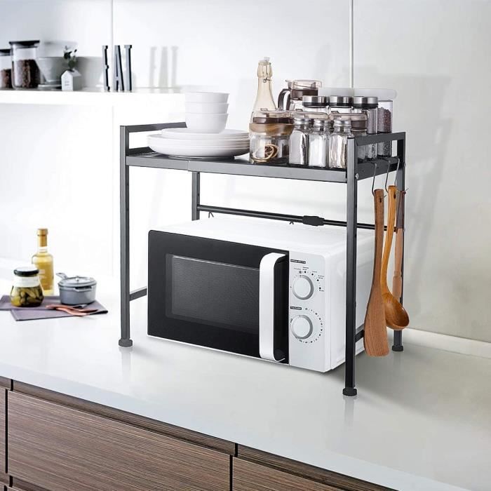 Meuble four et micro onde au meilleur prix | Leroy Merlin Meuble Rangement Micro Onde Meuble Rangement De Cuisine Support Four Micro-Ondes Avec 3 Niveaux D'u00e9tagu00e8re Extensible En Hauteur & Largeur,avec 3 Crochets Parfaits,accrocher Vos Ustensiles De Cuisine Meuble Pour Micro Ondes ✅Robuste et durable : l'étagère pour micro-ondes est fabriquée en acier au carbone renforcé et recouverte d'une peinture noire haute température pour garantir que le support ne rouille pas, qu'il est facile à nettoyer et qu'il est durable. Taille de l'emballage : 82*37*6., 5cm Caractéristiques : Extensible + crochet, Spécificités: 1., étagère/étagère de four rétractable réglable de haut en bas, grande capacité, stockage à votre disposition., 2., conception télescopique, réglage libre de la longueur, tourner la tige rotative pour régler la longueur, hauteur de couche réglable librement, réglage flexible en fonction de la hauteur des articles, hauteur réglable de 8cm., 3., Dissipation de la chaleur ouverte, appareils électriques sans souci, pas de crainte de chaleur brûlante, peut rapidement évacuer le four et l'air chaud., 4., [Convient à tous les espaces] : la grille de cuisson peut être ajustée horizontalement et verticalement, elle peut être placée presque partout dans la maison., 5., [Gain de place dans la cuisine] : Ne vous inquiétez pas du fait que le four prenne trop de place sur le plan de travail, la grille de cuisson utilise l'espace pour ranger les ustensiles, ce qui vous permet de vous débarrasser de l'encombrement de la cuisine., 6., [Qualité durable] : Fabriqué en acier au carbone renforcé, recouvert d'une peinture noire à haute température pour garantir que le support ne rouille pas, qu'il est facile à nettoyer et qu'il est durable. EN STOCK : Support de Four à Micro-Ondes Extensible - Meuble Rangement Cuisine avec 3 Crochets 40-64 x 36 x 45cm - Noir, JJB002HEN pas cher ✅Dissipation de la chaleur : les appareils électriques ne craignent pas la chaleur brûlante, ils peuvent rapidement évacuer le four et l'air chaud. Gain de place dans la cuisine : vous n'avez plus à vous soucier de l'encombrement du four sur le plan de travail, le support de four utilise rationnellement l'espace pour ranger les ustensiles, ce qui vous permet de vous débarrasser du désordre dans la cuisine ✅Gain de place : plus besoin de s'inquiéter de l'encombrement du four sur le plan de travail, la grille de cuisson utilise raisonnablement l'espace pour ranger les ustensiles, ce qui vous permet de vous débarrasser de l'encombrement de la cuisine., Tout devient ordonné. Matériau : Acier au carbone, Poids brut : 4., 85kg