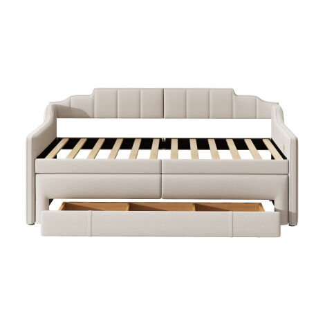 Spacieux, il peut accueillir vos amis ou d'autres invités pour la nuit. 【Port USB intégré】 Le canapé-lit est équipé d'un port USB intégré, vous permettant de recharger votre téléphone au lit sans avoir à chercher une prise. Découvrez la sélection Lit gigogne 90x200 pas cher de . Qualité et Confort au meilleur prix. Retrait magasin et Livraison Ce canapé-lit multifonctionnel 90x200 cm combine style classique et praticité moderne, avec tissu en lin respirant, sommier solide, port USB intégré et fonction gigogne 【Bureau pratique】 Ce canapé-lit est doté d'un bureau intégré sur le côté, idéal pour étudier ou travailler confortablement. Pack lit gigogne 90x200 PRADO design chêne/blanc + 2 matelas 【Structure robuste】 Ce lit possède une structure en bois simple et élégante, à la fois robuste et durable, avec des dossiers à lattes pour un soutien optimal. Cette construction garantit une longue durée de vie, une structure stable et un dossier qui ne vacille pas. Canapé Lit Plateau Structure Bois Canapé-lit Rembourré Avec Port USB Et Bande Lumineuse LED 90x200, Avec Meuble Multifonction Lin Et MDF 【Lit à roulettes】 Ce lit à roulettes escamotables optimise l'espace. Ce lit plateforme avec dossier en lin séduit par ses lignes épurées et sa couleur élégante. 【Design LED】 Ce canapé-lit est entouré d'un éclairage LED pour une ambiance relaxante.