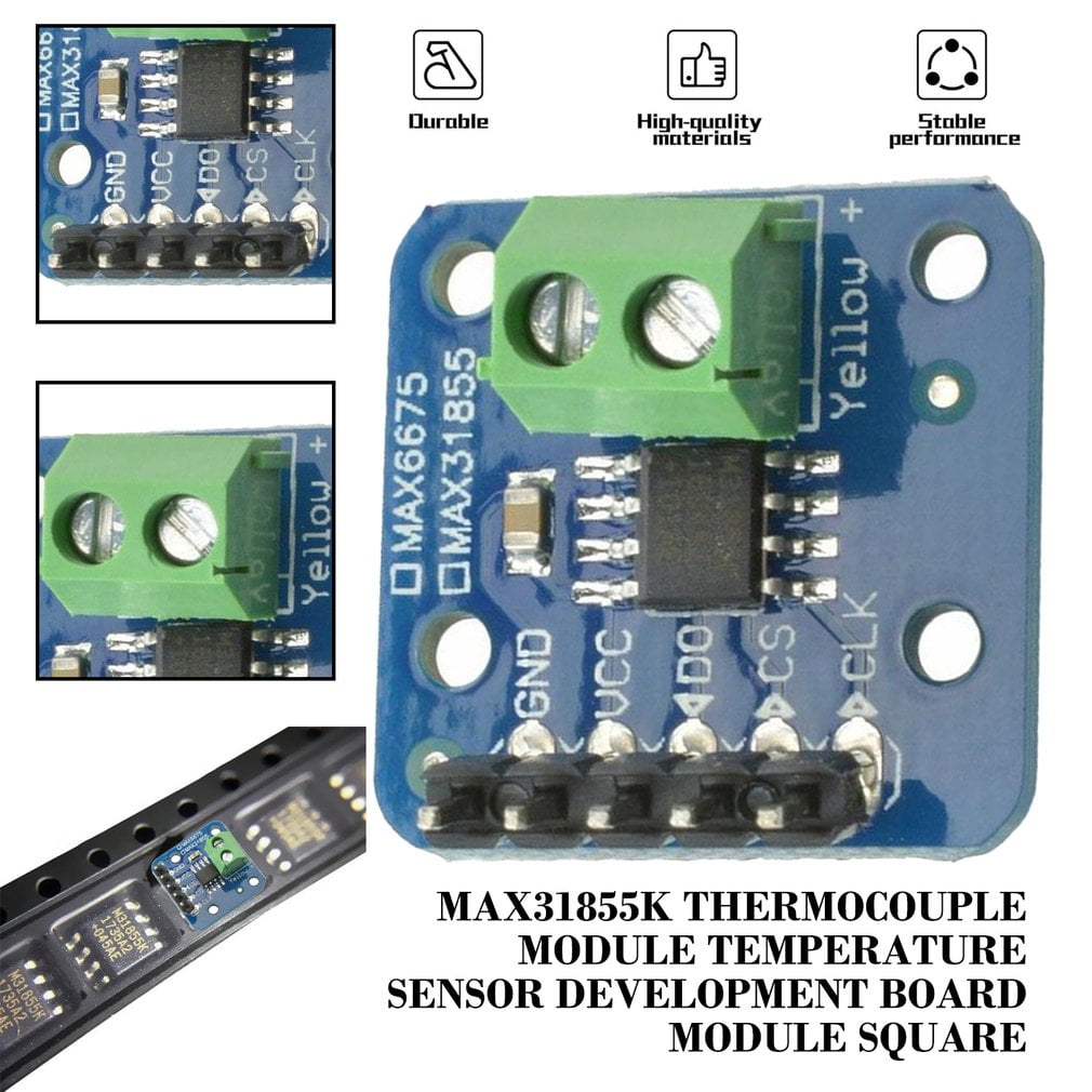 Module Thermocouple MAX31855 Haute Précision Sondes K Type - TBEST Module De Capteur De Mesure De Température Thermocouple MAX31855K Cette caractéristique en fait un choix idéal pour les tâches de mesure à haute température. Transmission avancée : le module de capteur de température thermocouple MAX31855 est équipé d'un port SPI pour prendre en charge la transmission de données à haute vitesse La tension d'entrée 3-5 V CC, facile à installer et flexible à utiliser, peut répondre à la plupart des exigences de collecte de données des sites industriels