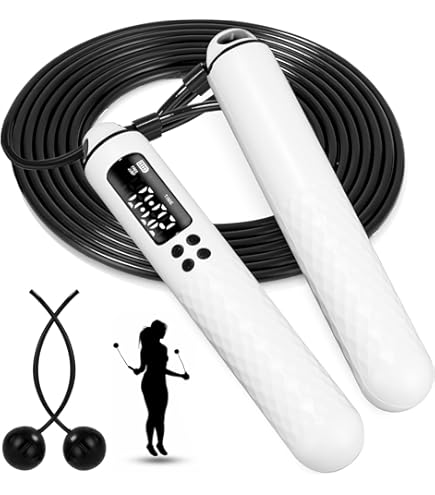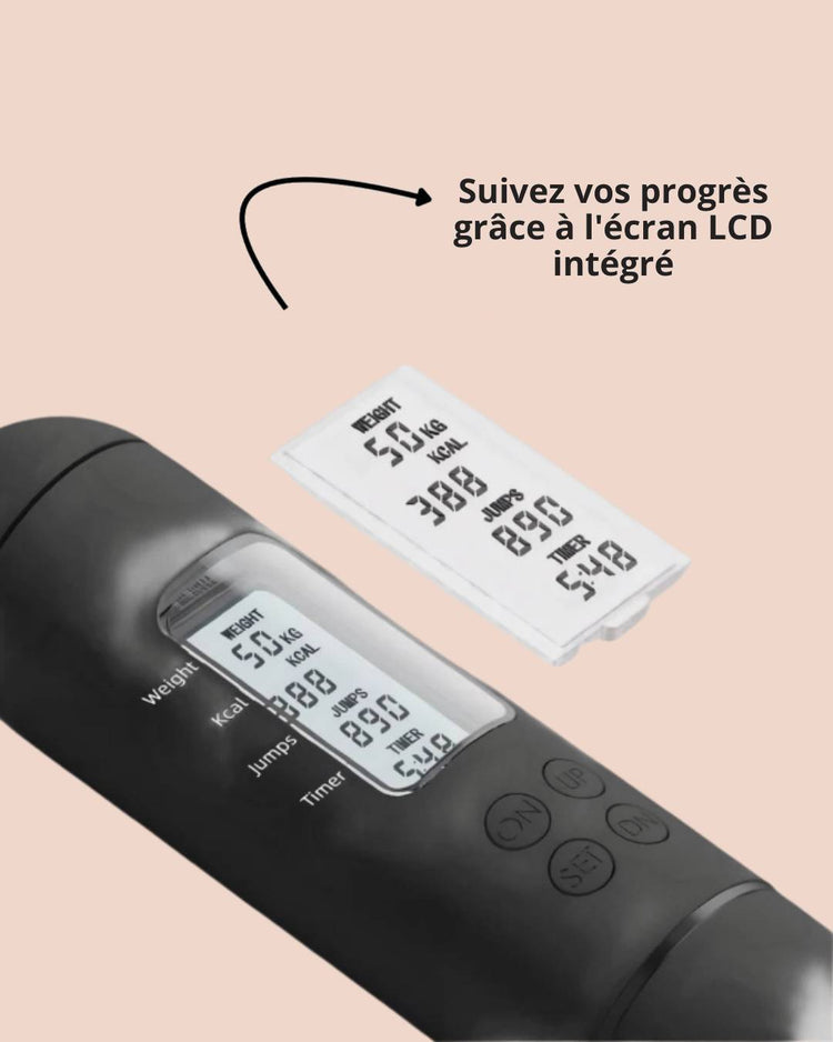 Digital Corde à sauter réglable, compteur de calories Jump Cordes à sauter-NOIR COS10448 - Sport Corde à Sauter Sans Fil Jumpflex Pro - Compteur Calories/sauts - Poignées Lestées - Fitness/CrossFit Un entraînement cardio de haute intensité sans équipement encombrant, accessible à tous les pratiquants (sportifs comme non sportifs) Cette corde à sauter est équipée d'un écran LED intelligent qui suit vos progrès en temps réel : temps, calories brûlées et nombre de sauts. Les balles lestées ajoutent de la résistance à chaque saut, ce qui rend cet appareil idéal pour brûler plus de calories et améliorer le cardio Ropeless Jumpflex Pro Kelepu Corde A Sauter Sans Filcordes à Sauter Lestées Sans Corde Corde A Sauter Sans Corde Perte Graisse équipement Sportif Développez votre force et votre endurance grâce aux poignées lestées