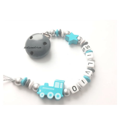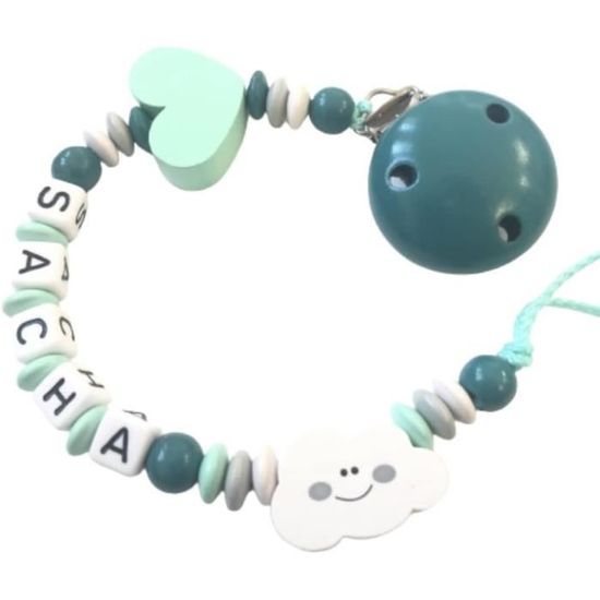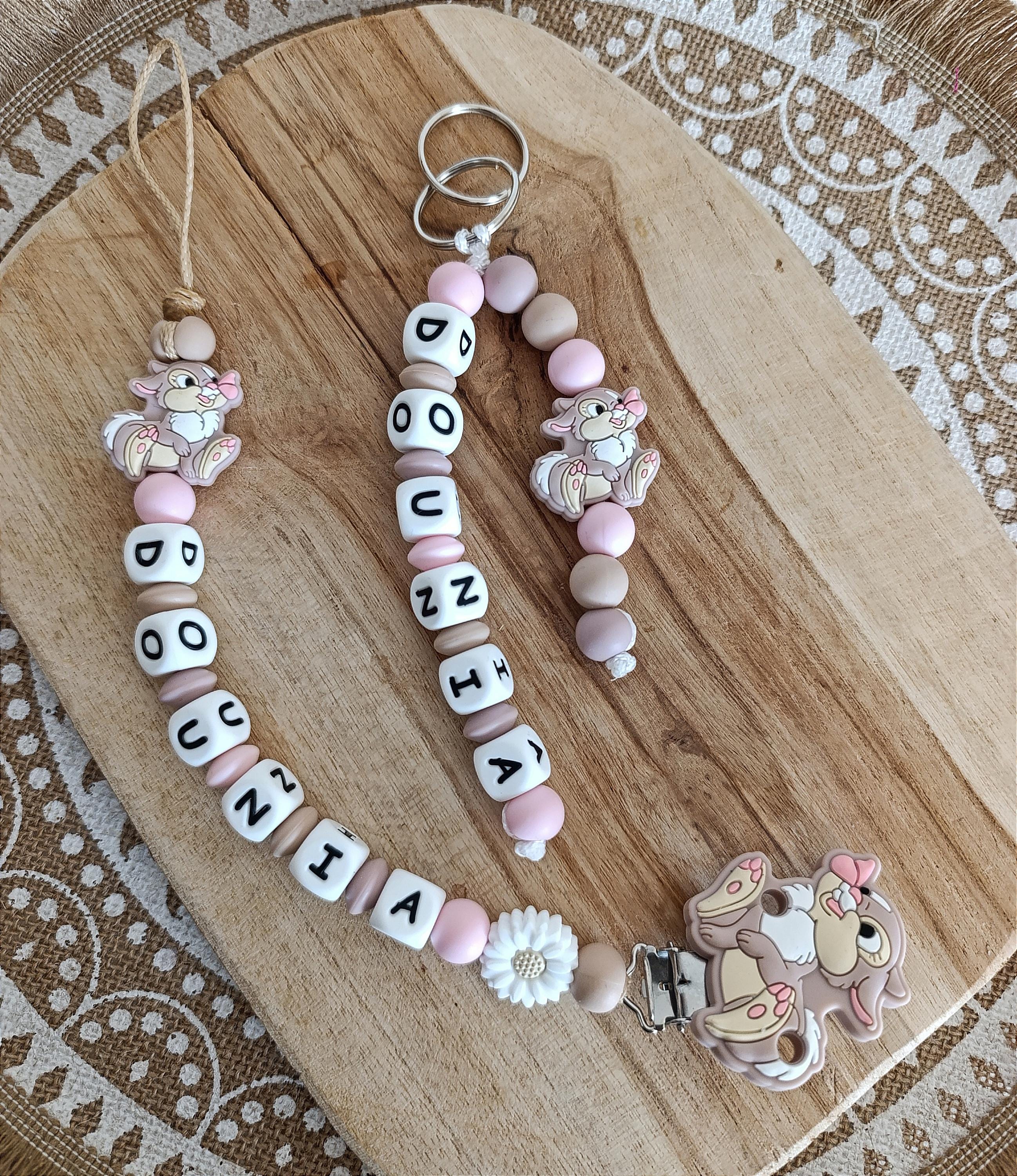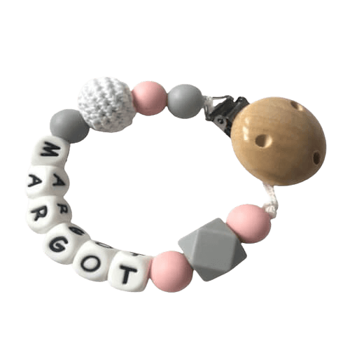 Attache Tetine Prénom Gris Clair Et Rose Pâle Motif I Love - Kids And Crea