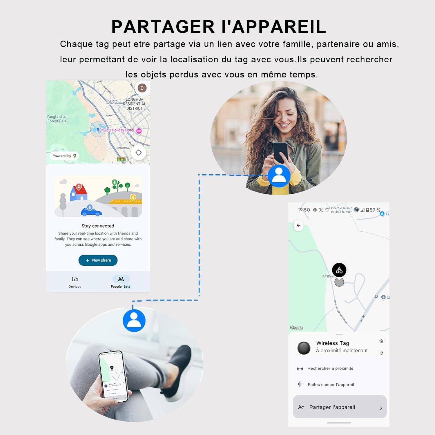1 Partager la localisation 2 Protection des données Vous pouvez utiliser toutes les fonctions de Smart Tag Android, sans frais de service ou supplémentaires. Le tracker Android est petit et léger et est livré avec des cordons qui vous permettent de fixer facilement le localisateur de clés Android à vos clés, portefeuille, sac à dos, valise et autres objets Positionnement précis : la balise Air Android est équipée de la technologie Bluetooth, peut contrôler la distance de l'élément, avec la fonction de suivi sonore pour verrouiller rapidement la cible ; prise en charge du réseau de positionnement global, ce tracker sans abo hors de portée Bluetooth peut toujours être affiché sur Google Maps dans l'application Google Find My Device pour voir son emplacement, mise à jour de localisation Android en seulement 1 à 3 minutes Caractéristiques : Une fois que le Smart Tracker Android est détecté par un appareil, vous recevrez automatiquement une notification. Idéal pour les activités de plein air ou dans des environnements humides. CooAoo Android Smart Tag Traceur, Tracker Android Fonctionne avec l'app Google Localiser (Uniquement Android) pour Les clés, Portefeuilles, Valises, Bagages Batterie Remplaçable en destockage et reconditionné chez Protection des données et sécurité : tracker portefeuille Android Basé sur le réseau Google Find My Device, toutes les données de localisation sont transmises avec un cryptage de bout en bout, l'historique n'est pas conservé, et l'appareil et le cloud sont doublement anonymisés pour empêcher l'accès des tiers aux informations, et le système de Google ne peut pas être connu pour assurer la sécurité de vos données. Vous pouvez partager votre Smart Tag Android Air avec d'autres personnes dans l'application « Google Find My Device » afin qu'ils puissent voir l'emplacement sur la carte. Idéal pour les objets gérés ensemble ou pour vous aider à trouver des objets. Mode perdu : lorsque vous êtes en voyage ou en plein air et que vos objets ou Air Tracker Android, vous pouvez activer le mode perte pour votre tracker de valise Android. Smart Air Traceur Tag Lot de 2, Compatible avec l'app Apple Localiser Trouvez vos objets à l'aide de centaines de millions de Google Find My Device. 2PCS Smart Tag Traceur Localisateur D’Objets Bluetooth,Fonctionne avec...