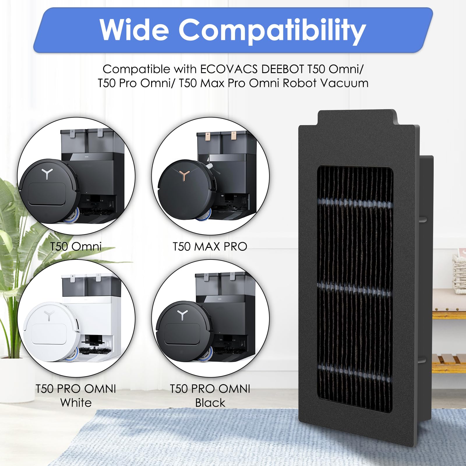 【Compatibilité parfaite】 les filtres HEPA de rechange sont compatibles avec les aspirateurs robot ECOVACS DEEBOT T50 Omni/ T50 Pro Omni/ T30C Omni (PAS POUR T50 Max Pro Omni/ T30C Pro Omni). Compatibilité parfaite Les filtres HEPA de remplacement sont compatibles avec Ecovacs Deebot T50 Pro / T50 OMNI / T50 Pro Omni / T30c Omni Robot Vacuum. Veuillez vous assurer que votre modèle est correct avant la commande. Veuillez noter que: ce n'est pas un produit OEM Veuillez vous assurer que votre modèle est correct avant de passer commande. Et ils sont également d'une excellente finition. Si vous avez des questions ou des besoins, veuillez nous contacter à tout moment et notre équipe après-vente fournira des services satisfaisants à chaque client. Ecovacs T80 Filtres Antibactériens* Pour DEEBOT T50 OMNI/T50 PRO OMNI/T30C - FR Entretien Robot Aspirateur Ecovacs Veuillez noter que ceci n'est pas un produit OEM. Le filtre HEPA est conçu avec des coins arrondis pour éviter de blesser les mains. 【Installation facile et achetez en toute confiance】 les filtres T50 Omni/ T50 Pro Omni/ T30C Omni sont parfaitement assortis, ce qui est facile à installer et à utiliser. Toute utilisation du nom de la marque ou du modèle est uniquement destinée à démontrer la compatibilité de ce produit. 5 Pièces) Filtre Hepa De Remplacement Compatible Avec L'Aspirateur 【Excellent rapport qualité/prix】Ce colis est livré avec 5 filtres d'aspirateur pour robot T50 Omni/ T50 Pro Omni/ T30C Omni de haute qualité. LOVOBO Lot de 25 Pièces Accessoires pour aspirateur Ecovacs Deebot T50...