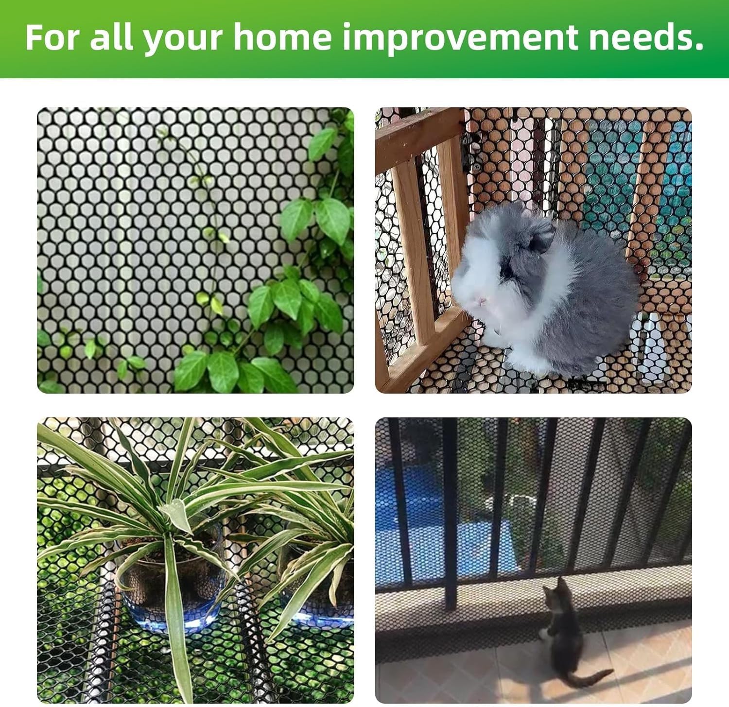 Grillage Plastique 40cm X 6m Maille 4mm Aocet Grillage Plastique, Filet De Protection Pour Oiseaux Chat Animaux Pour Balcon Fenetre Poulailler, Petite Maille(0.8CM), Blanc (Couleur Grillage Souple Facile à utiliser: La grillage en plastique se découpe facilement aux ciseaux, à la taille souhaitée et s'installe facilement grâce aux attaches fournies. Le filet pour chats de est stable aux UV, résistant à la traction et donc spécialement conçu pour garder vos chats dans des territoires sûrs Avec ses 25M de longueur, le grillage triple torsion en revêtement PVC vert est idéal pour l'extérieur. Vous pouvez sécuriser de grands espaces, afin de protéger vos animaux comme vos cultures Elle offre une excellente durabilité et une grande résistance à la déchirure pour une utilisation à long terme. Large gamme d'utilisations: la clôture de protection en plastique peut non seulement être utilisée comme filet de jardin, filet de protection de pelouse, filet d'élevage de volaille, clôture à poulets, filet à taupes, mais également comme filet pour chien et filet pour chat pour le balcon. Filet Anti Oiseaux 4m x 6m Filet de Protection avec 20 Clous de Elle permet de délimiter les petits animaux ou de protéger votre jardin des intrus. Ce grillage de protection en plastique sans bords tranchants est très respectueux des animaux domestiques. Contenu: 1 x filet de protection en plastique 40 x serre-câbles en nylon Matériaux de haute qualité: Fabriquée en plastique robuste, cette clôture pour volailles présente une structure stable pour résister aux intempéries. Dimensions et emballage: Le paquet contient un rouleau de filet pour poule de 0,4 mètre de large et 6 mètres de long, ainsi que 40 attaches en nylon noir. Elle peut être utilisée comme barrière pour animaux, pour empêcher les volailles de se perdre, comme clôture de jardin ou comme protection des plantes. Sans danger pour les animaux: Cette clôture en filet plastique est sans bords tranchants et est très respectueuse des animaux. Quantité: 1 rouleau Accessoires d’installation: 40 attaches de câble (20 cm de long, 0,36 cm de large) La filet poule est fabriquée en plastique de haute qualité, très flexible, résistant à la rupture et durable.