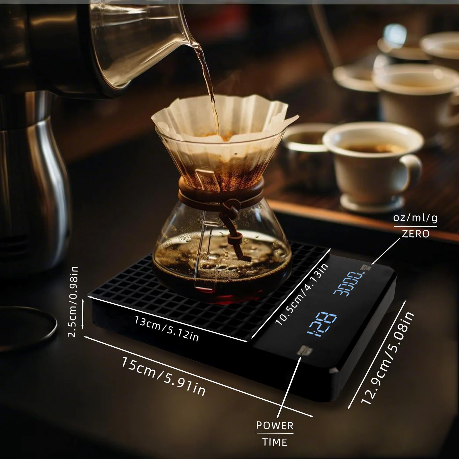 Attention : veuillez l'utiliser sur une surface plane sans vent ! Notre balance à café numérique peut vous aider à infuser pour obtenir une tasse de café constante. Minuteur Mini balance à café : la balance à expresso est assez petite pour tenir dans votre paume, seulement la taille de votre paume, plus peu encombrante que les autres balances électroniques. 4 modes : la balance à café avec minuterie dispose de 4 modes, y compris le mode manuel, le mode automatique, le mode expresso et le mode débit. pour prolonger la durée de vie de la batterie et économiser de l'énergie. Le mode débit peut surveiller le débit d'injection d'eau en temps réel, et le mode expresso peut afficher le rapport de poudre et d'eau, ce qui peut mieux présenter le goût du café tout en assurant la stabilité de la qualité et de la consistance du café à chaque préparation. Grâce à la dernière technologie de pesée et au capteur de haute précision, la balance de cuisine peut se stabiliser plus rapidement et réagir de manière sensible à chaque augmentation de 0,1 g, ce qui permet des mesures précises de 0,1 g à 3000 g. Balance Digitale Timer USB Balance De Précision Pour Café - Balance De Cuisine 3kg/0.1g USB Rechargeable, Écran Tactile, Idéale Barista Et Cuisine Balance Timer Intégré Maintenez les touches Timer et Zero en même temps pendant environ Appuyez pendant 2 secondes pour éteindre le bip de cette machine à café et vous permettre de profiter d'un café paisible. La balance de précision à café est fabriquée en verre trempé et en plastique ABS de qualité alimentaire. La petite balance à café a deux modes de minuterie intégrés, automatique et manuel, de sorte que vous pouvez programmer le processus de préparation du café avec précision. Le double écran HD LED est clair, facile à gérer le temps et le poids, et peut facilement voir l'écran même dans des environnements sombres ou éblouissants. Sa taille compacte le rend facile à placer dans la cuisine ou à transporter en camping. La balance à café numérique convient aux petites tasses d'espresso et aux tasses de la taille d'un latte ou d'un cappuccino Balance Connectée BKXCHA Balance à Café Avec Minuteur, 5 Kg/0,1 G Balance De Cuisine Numérique Rechargeable, Balance De Précision Pour Expresso, Balance De Cuisine Numérique LCD Avec Mesure Automatique Du Temps Balance Batterie au lithium rechargeable intégrée de 250 mAh, rechargeable de type C.