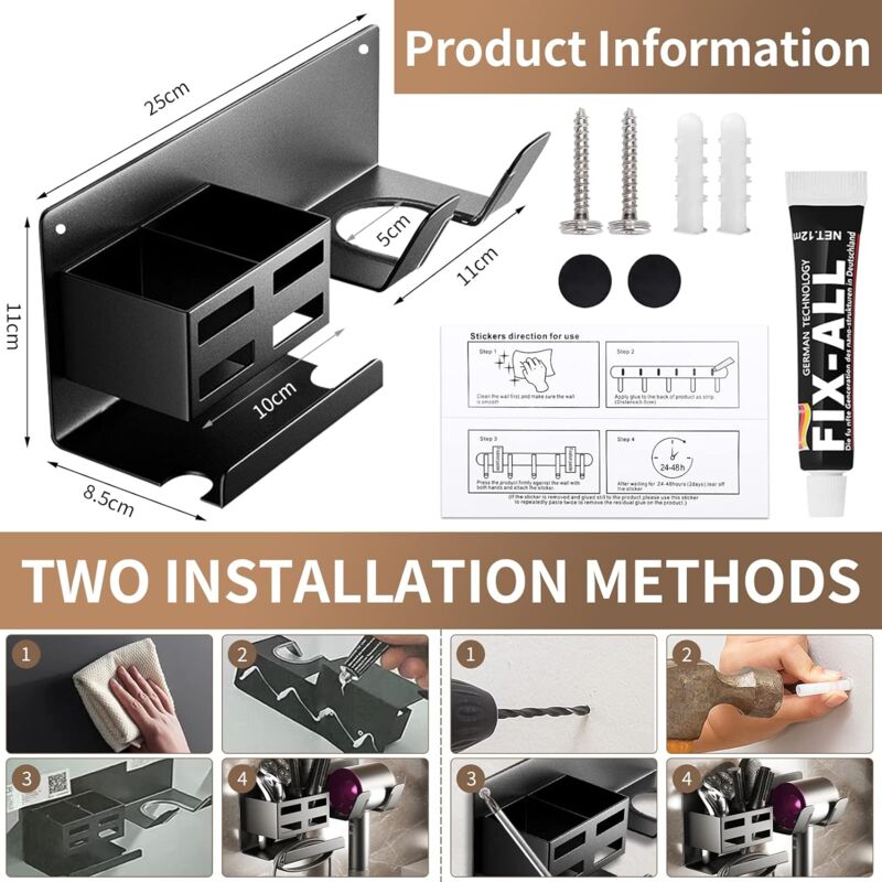 Caractéristiques du produit : Matériau : alliage d'aluminium Couleur : noir., Charge maximale : ≥ 40 kg. L'organisation et le rangement de l'espace sont plus efficaces : notre support de sèche-cheveux a été spécialement conçu, ce qui rend votre maison plus rangée et plus spacieuse. 💪 Matériaux de haute qualité, robustes et durables : l'utilisation de matériaux de haute qualité garantit que le support est robuste et durable, ne se déforme pas lors d'une utilisation prolongée et résiste aux chutes et à l'usure. Il suffit de l'utiliser dans la chambre, la salle de bain, le salon de coiffure ou les toilettes. Offre des méthodes d'installation doubles flexibles, de sorte que vous pouvez choisir librement selon vos besoins. Accessoire Salle De Bain Organisateur Organisateur Cosmétique Support Mural Sèche-cheveux Sans Perçage - Alliage Aluminium - Universel - Noir - 21x5 Cm Support Mural Sèche-cheveux Sans Perçage Universel Support Mural Alliage Aluminium Noir Fonction puissante pour garder l'espace bien rangé : notre support de sèche-cheveux peut ranger correctement le sèche-cheveux et 2 buses fréquemment utilisées et est également équipé d'un support de câble d'alimentation pour éviter les enchevêtrements de câbles. Haute stabilité, utilisation polyvalente : notre support de sèche-cheveux dispose d'une excellente capacité de charge grâce à son matériau en alliage d'aluminium de qualité supérieure et à son adhésif à haute viscosité, ce qui assure une suspension stable. Aucun perçage nécessaire, installation simple et pratique : le support de sèche-cheveux que nous concevons ne nécessite pas de perçage, ce qui le rend plus facile à utiliser. Vous pouvez l'installer facilement et en toute sécurité sur une surface lisse ou utiliser des vis pour une installation traditionnelle. Forte adhérence : Installation rapide sans endommager le mur. Aucun perçage requis. L'arrière du support est doté d'un adhésif puissant avec une grande surface... Vous avez des problèmes avec votre sèche-cheveux désordonné et prend de la place ? Choisissez notre support de sèche-cheveux pour mieux organiser votre espace de vie, mettre fin au désordre et faciliter le rangement. Il suffit de le coller sur une surface propre et plane et il peut être installé fermement. 👍【Matériau de haute qualité, robuste et durable】 Notre support de sèche-cheveux est fabriqué en alliage d'aluminium de haute qualité, qui présente d'excellentes propriétés de rouille, de corrosion et de déformation. Conception antidérapante magnétique, stable et ne glisse pas : la conception magnétique antidérapante unique peut fixer fermement le sèche-cheveux et éviter tout risque de glissement ou de chute. Utilisation polyvalente : ce support de rangement est parfait pour ranger les sèche-cheveux et autres petits appareils, libérant ainsi de l'espace dans votre salle de bain ou votre cuisine Support Mural Sèche-Cheveux : Pratique et Sans Perçage Poids : 300 g Dimensions : 30 Support de sèche-cheveux : 9 x 5 cm Crochet de câble : 5 x 4,5 cm Buse magnétique : 5,7 x 5,7 cm., Contenu : 1., Support pour sèche-cheveux., 1 crochet de câble.
