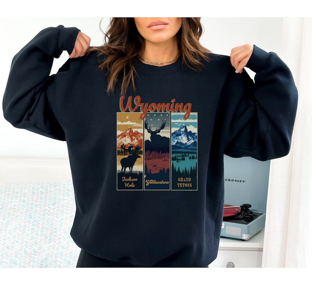 Le Wyoming, c'est un ciel ouvert, des sommets escarpés et une nature sauvage. De Yellowstone aux Tetons, c'est un état plein d'aventures et de beauté naturelle Pull Homme Femme Classique Sweat-shirt Wyoming, Chemise Wyoming, Cadeau États-Unis Sweatshirt Col Rond Tissé quot;Les États-Unis De L'Amérique Septentrionale" Poster for Sale by Caractéristiques : design unique Wyoming, Michigan, États-Unis 241 g, coupe classique, col tissé