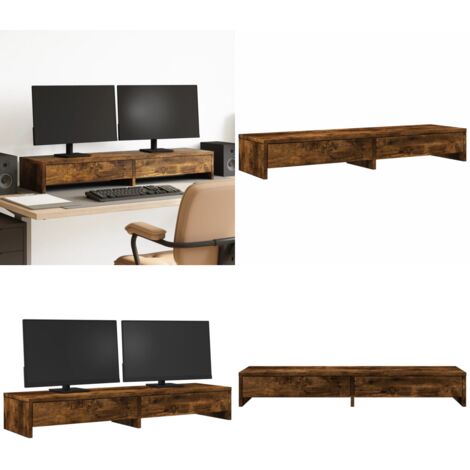 Capacité de charge max., (chacune) : 5 kg, La livraison contient : Le support de moniteur VIDAXL en chêne artisanal allie esthétique et fonctionnalité pour sublimer votre espace de travail. Avec ses dimensions de 50 x 27 x 15 cm, ce meuble s'intègre parfaitement sous votre écran tout offrant un rangement pratique pour clavier, documents ou ordinateur portable Améliorez votre espace de travail avec ce support de moniteur double pratique pour un meilleur confort de visualisation et un meilleur style. 1 x support de moniteur, 2 x tiroir Couleur : chêne artisanal;Matériau : bois d'ingénierie;Assemblage requis : oui 【Entretien facile :】 grâce à sa surface lisse, la plate-forme du moniteur est facile à nettoyer avec un chiffon humide et nécessite moins d'entretien. Matériau : bois d'ingénierie, Assemblage requis : oui, Support de moniteur : Support de moniteur Marron miel 50x24x13 cm Bois de pin solide Dimensions intérieures : 44 x 19 x 6 cm (L x l x H) Matériau stable et durable : le bois d'ingénierie est un matériau durable et stable dont la surface lisse résiste à l'humidité, à la déformation et au fendillement, ce qui en fait un choix fiable pour divers projets. Convient pour deux moniteurs, Tiroir : Fonctions multiples :] cette contremarche de moniteur peut être utilisée comme meuble TV ou rehausseur pour votre moniteur de bureau et d'autres appareils multimédias. Lever votre écran réduira la tension sur votre cou et votre dos. Couleur : chêne artisanal;Matériau : bois d'ingénierie;Dimensions Support Double écran Tiroirs Armoires Avec 2 Tiroirs 2 Pcs Chêne Artisanal Bois D'ingénierie | Leroy Support Moniteur Bureau Dimensions totales : 100 x 27 x 15 cm (L x l x H)