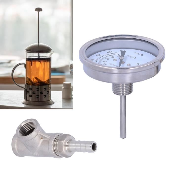 Thermomètre Bimétallique Acier Inox Thermomètre - ATYHAO - Modèle 98666 - Acier Inoxydable - Plage De -10℃ à 100℃ - Jardin Cadran 63 Mm Plage 0 120°c Mesure précise de la température : utilise un système de bande bimétallique fiable, offrant des lectures précises de la température dans la plage de 0 à 120 °C avec visibilité en 40 secondes. Thermomètre Alimentaire Pince Réglable Grand écran D'affichage... Le thermomètre à plongeur Thermador est conçu pour mesurer des températures dans une plage de 0 à 120°C. Il est idéal pour une utilisation dans divers contextes de chauffage et d'amélioration de l'habitat Couleur : conforme à l'image., * Plage de mesure : 0 à 120 ℃. Grand cadran de 63 mm facile à lire : dispose d'un cadran transparent de 63 mm, les lectures sont rapides à interpréter même dans des environnements sombres ou occupés. Thermocouple de type K - VVIKIZY - WRNT-10 - Plage de mesure 0-800°C - Sonde en acier inoxydable Installation rapide, aucun outil nécessaire : le support à ressort permet une fixation aux tuyaux sans aucun outil supplémentaire, ce qui le rend pour l'entretien ou les configurations temporaires. Le thermomètre se fixe très rapidement au fil à l'aide du ressort fourni. Les thermomètres pour tuyaux s'adaptent à tous les tuyaux standard. * Dimensions : 6,3 x 6,3 x 1 cm. Le changement de température provoque une déformation mécanique de la bande bimétallique tubulaire, ce qui entraîne le mouvement de rotation du pointeur. Comprend un thermomètre à tuyau et un ressort : livré avec un thermomètre industriel à pince et un ressort de montage pour une installation rapide et sûre sur des tuyaux de taille standard dans les applications de chauffage. Contenu de l'emballage : Thermomètre industriel pour pipeline., *Ressort *La longueur du ressort lorsqu'il n'est pas étiré est de 6,5 cm.