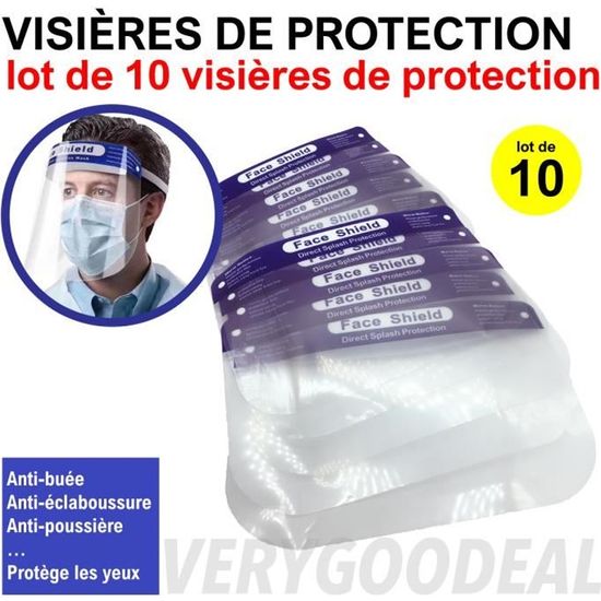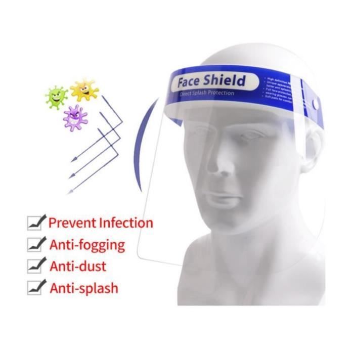 VISIERE DE PROTECTION - MODELE LONG FACE SHIELDS Masque Protection Poussiere Visière De Protection Transparente Masque Anti Poussiere Les visières sont en stock au Royaume-Uni et si achetées auprès de ILFD Group Ltd, elles seront expédiées le jour suivant n'importe où au Royaume-Uni. La visière en plastique légère est fixée à un bandeau élastique qui est fixé en toute sécurité autour de votre tête. Le masque peut être utilisé pour éviter la fumée d'huile lors de la cuisson et pour bloquer les rayons UV en plein air. AIEOE Lot de 10 visières de sécurité pour le visage - Réglables - Transparent - Protection professionnelle contre la buée - Anti-saliva - Anti-poussière - Protection du visage - Noir - taille unique La visière est livrée avec 2 couches de film qui protègent le plastique. À propos de cet article Efficace : les masques faciaux pour le contrôle des infections protègent contre les liquides et les gouttelettes offrant une couverture complète de la zone du visage À la réception, retirez les deux couches de film avant utilisation, sinon vous ne serez pas en mesure de voir clairement à travers. Le masque facial peut être réutilisé encore et encore après le nettoyage.