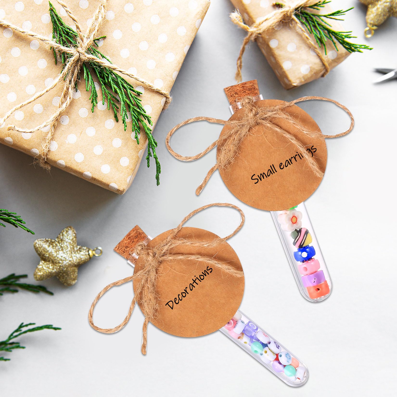 Accessoire Décoration Mariage Noël Acetiti 36 Pièces 10ml Tubes à Essai, Transparent Tube à Essai Avec Bouchon En Liège 15x100mm, Mini Eprouvette Pour Cadeaux Mariage Bonbons Épices Laboratoire Décoration De Fête Tube A Essai Remplissez-les de fleurs, de confettis, d'épices ou de bonbons, parfaits pour les occasions festives comme Noël, Halloween ou la Saint-Valentin. Tube à essai 160x16mm en verre borosilicate avec bouchon de liège... Avantages : 1. Le tube à essai est fabriqué en plastique PET et en bouchon en aluminium, il peut être réutilisé, est solide et résistant aux chocs, et durable Fabrication en plastique de haute qualité : Les tubes à essai avec bouchon sont fabriqués en plastique durable. Contenu de la livraison : Le coffret comprend 36 tubes à essai avec bouchon (16 × 100 mm), chacun avec un bouchon en liège, 36 étiquettes rondes en papier kraft (5 cm de diamètre) et un rouleau de ficelle de 10 m, ce qui est suffisant pour vos divers besoins de bricolage et de rangement. Tube A Essai Plastique 24Pcs Boîte Dragée Sachet Bonbon Ballotin Projet décoratif polyvalent : Parfait pour les cadeaux de mariage, les compositions d'anniversaire, les décorations à thème ou les cadeaux faits maison. Quels sont les avantages de nos tubes à essai en plastique ? 1., Ces tubes de laboratoire et tubes à essai sont fabriqués en plastique durable et allient transparence et robustesse. Caractéristiques : Matériau : Plastique, Bois Couleur : Transparent Tube à essai : 16 × 100 mm Torsade : 10 m Étiquette en papier kraft : 5 cm Contenu du colis : 36 tubes à essai avec bouchons 36 étiquettes en papier kraft 1 rouleau de ficelle Garantie du service client : Pour toute question, n'hésitez pas à nous contacter dans les meilleurs délais. En raison des différents réglages de votre écran, la couleur réelle peut légèrement différer des images en ligne. Nous vous répondrons dans les plus brefs délais. Facile à ouvrir et à refermer, il est idéal pour ranger de petits objets, qu'ils soient décoratifs ou pratiques. Le bouchon en bois hermétique complète parfaitement le tube à essai et garantit un stockage sûr. Le contenu est ainsi facilement accessible et reste sec., 5., Que vous créiez des cadeaux de mariage personnalisés, des décorations de Noël ou d'anniversaire, ces tubes ajouteront une touche unique et tendance à vos moments spéciaux.