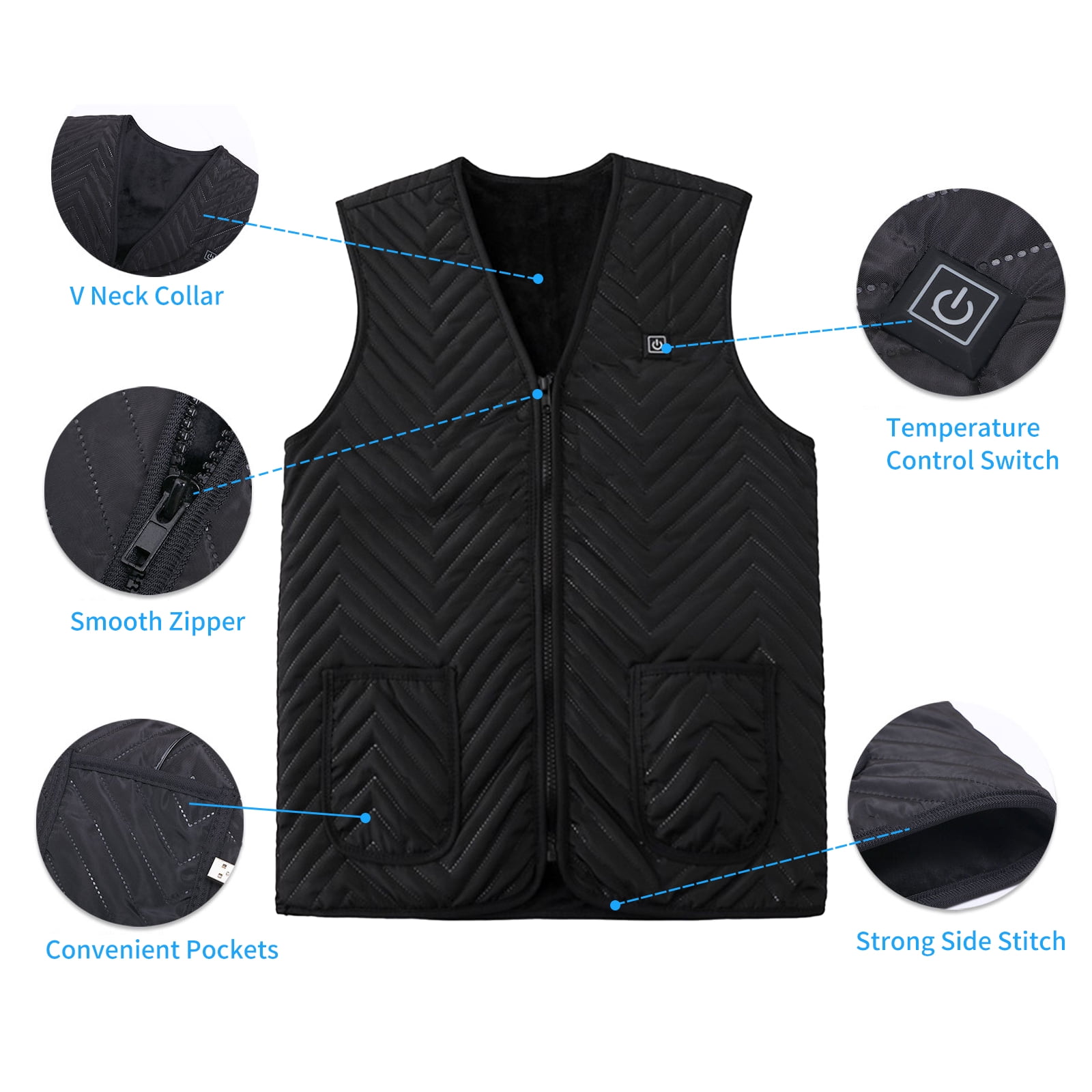 Tailles : Disponible en plusieurs tailles. Gilet chauffant électrique avec double interrupteur, réglable, 4 radiateurs, chargement USB, ultra léger, protection contre le froid extérieur, noir (batterie non incluse). Caractéristiques Bienvenue chez RLEHJN~ Matière : Synthétique Caractéristiques : Doudoune homme femme, à capuche, avec poches et zippé, coupe slim, convient à la plupart des personnes et à diverses occasions. Polyvalent : Que vous soyez en randonnée, en camping, au ski ou que vous travailliez en extérieur, nos vestes chauffantes sont idéales pour toutes vos activités de plein air. Simple et élégant : Nos vestes chauffantes sont fabriquées dans une matière coupe-vent avec une attention particulière portée aux détails pour une coupe ajustée. Réglage de la température : Le réglage indépendant ou intégré de la température permet un meilleur contrôle des zones de chauffage avant et arrière. À l'intérieur comme à l'extérieur, vous pouvez choisir la température idéale, même par mauvais temps. Veste sans manche chauffante Veuillez noter que la couleur et la taille peuvent varier légèrement en raison de facteurs inévitables. Doudoune Sans Manches Homme Wyongtao Gilet U00c9lectrique Chauffant Pour Homme Et Femme,Veste Chaud Avec 2 Modes De Chauffe Et 11 Zones De Chauffage,Rechargeable Par Usb Lavable Electric Body Warmer Moto Electrique Adulte Veste Chauffante Homme Femme Gilet Chauffant 9 Zone, Gilet Polaire Hiver Chaud Sans Manche, Veste Chaude Electrique Lu00e9ger Ru00e9glable Unisexe USB, Pour Chasse Exterieur Camping Dos Et Nuque (XS Les tailles RLEHJN sont des tailles asiatiques ; veuillez consulter le tableau des tailles pour trouver la vôtre., Fonction : Idéal pour une tenue décontractée en intérieur et en extérieur, pour les rendez-vous, les vacances et les sorties, pour un look tendance et élégant. Fabriqué dans une matière durable, il est parfait au quotidien, que ce soit pour sortir, faire du sport, s'entraîner, courir ou tout autre type d'entraînement, ou tout simplement pour le quotidien. Convient pour le quotidien, le camping, la maison, les fêtes, les sorties en boîte, les voyages, la randonnée, les vacances, Noël, les rendez-vous galants, le sport, le shopping, l'école, le travail ou pour la ville. S'associe facilement avec des bottes, un jean ou un legging pour un look élégant au hiver.