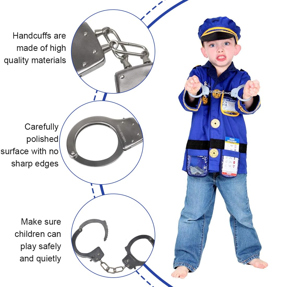 Facile et sûr à utiliser : Peut être adapté à des poignets de différentes tailles, facile à transporter, le badge de police et la chaîne texturée s'accrochent à l'enfant sans aucune pression. Menottes Police en Métal accessoire policier Description du produit Costume policier enfant avec menottes est un excellent choix pour les enfants qui aiment jouer à la police. Costume de cosplay cool : ce costume de police de cosplay convient à de nombreuses occasions, de Halloween aux jeux de rôle de minuit, aux jeux de fête sur le thème de la police et plus encore. Cadeau unique: Police equipement accessoires enfant est un cadeau d'anniversaire idéal pour enfant, favorise également le développement de compétences telles que l'imagination, la créativité et, le jeu social. Parfait pour les enfants qui veulent se déguiser en policiers et jouer avec d'autres amis. Notre costume de police est fait de matériaux sûrs et durables et fournit des accessoires réalistes que les enfants adoreront. TXS GETRICH Police Equipement Accessoires Enfant, 5 Pièces Police Des variations mineures (1 - 2cm / Inch) peuvent survenir en raison du processus de production manuel. Costume policier enfant comprend des menottes, des lunettes, des badges et des écouteurs, tout ce dont votre enfant a besoin pour jouer le rôle d'un policier ou d'un agent. Les mesures sont approximatives. Tu veux vraiment être flic plus tard? Avec l' ensemble de police 5 pièces pour enfants, vous pouvez essayer à quoi ressemble la vie en tant que policier! Le grand ensemble complète également chaque costume de police Deguisement Halloween Sexy Homme Costume Policier JurciCat Costume Police Enfant - Kit 5 Pièces Avec Menottes, Insigne Et Sifflet Pour Jeux De Rôle Et Fêtes Accessoires Déguisement Policier Menottes Jouet Métal Badge Police Spécifications: Matière: métal, alliage, cuir, plastique Taille: Comme le montre l'image Quantité: 5 pièces Le forfait contient: 1 x lunettes de soleil 1 x menottes 1 x clé pour menottes 1 x insigne de police 1 x bouchon d'oreille Note: La couleur du produit peut varier légèrement en raison des conditions d'éclairage, des paramètres d'affichage ou de l'écran de l'appareil.
