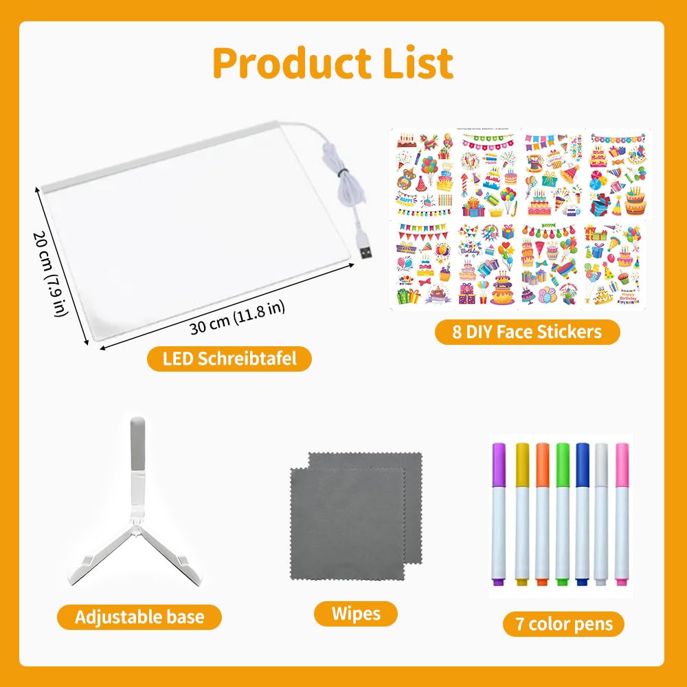 Réutilisable, facile à nettoyer et durable, il suffit d'un chiffon en microfibre ou d'un chiffon humide pour un nettoyage facile. 🎨 Organisez et actualisez votre vie. Il est doté d'une lumière LED en bas qui diffuse une douce lueur, rendant vos dessins plus vivants. Il peut également servir de liste de tâches, de liste de courses, de tableau photo, de calendrier, de tableau d'affichage, de message d'amour, d'agenda de travail, d'agenda d'étude, de promotion de produit et de décoration d'anniversaire. ⭐ Étant donné qu'il s'agit d'une mesure manuelle, veuillez prévoir une marge d'erreur de 0 à 2 cm. Lumi Board Tableau à Dessin LED Pour Enfant - 30 X 20 Cm - Avec 7 Couleurs De Lumière Et Tablette Lumineuse Dessin L'angle du tableau blanc est réglable selon vos besoins, ce qui permet de le placer facilement sur un bureau ou une autre surface plane. Il dispose d'une interface USB pour une utilisation facile. Ce tableau LED 30x20cm est trop fun pour noter tes idées, dessiner ou laisser des memos à ta famille. Avec ses 7 stylos de couleurs, tu peux écrire en fluo et... écran Dessin Enfant Tableau Acrylique Lumineuse LED,30 X 20cm Tableau Lumineux,Acrylique Tableau Décoratif Bureau Il suffit d'appuyer sur un bouton pour profiter de l'atmosphère romantique et chaleureuse du tableau LED couleur. Il vous permet d'écrire de doux messages pour vos enfants ou vos proches. Beaux-Arts et Loisirs créatifs - Découvrez notre offre 30 x 20 cm Tableau lumineux Message LED Acrylique Effaçable - 7 Stylos Néon Support Réglable Cadeau Créatif Pour Enfants. Livraison gratuite à partir de 25€* | Paiement sécurisé | 4x possible | Retour simple et rapide Veuillez vous référer à l'article réel. Sa conception est sûre, inodore, durable et facile à effacer, ce qui le rend idéal pour votre enfant. Caractéristiques : 🎨 Le matériau lavable du tableau magique acrylique effaçable permet un nettoyage facile, vous permettant de mettre à jour rapidement vos messages ou illustrations. Ce tableau acrylique lumineuse message LED est idéal pour les enfants, les amateurs d'art ou comme cadeau pour des occasions spéciales comme un anniversaire, Noël ou d'autres fêtes, afin de surprendre famille et amis.