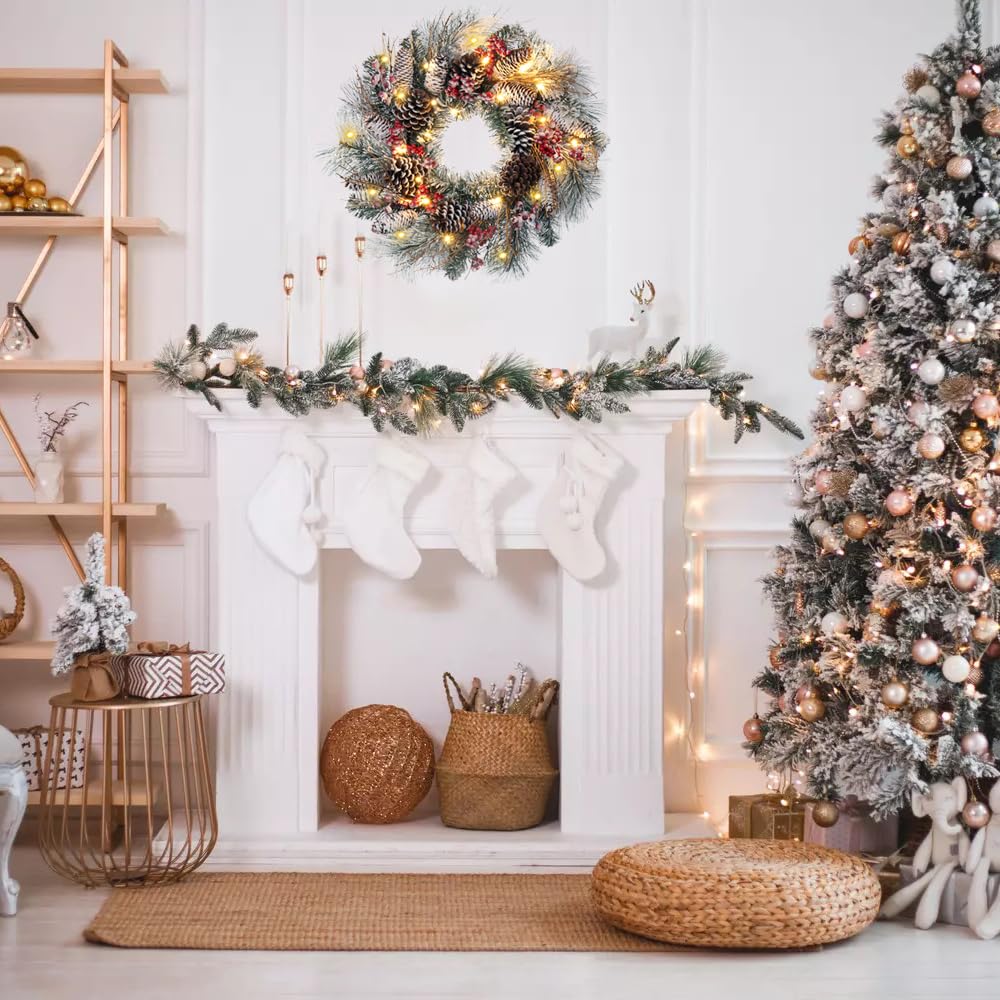 【Couronne de Noël lumineuse】Nos couronnes de Noël uniques allient harmonieusement charme rustique et esprit des fêtes. Que vous soyez à la recherche de la couronne de pommes de pin classique parfaite pour votre porte d’entrée ou d’une guirlande à feuilles scintillantes pour embellir votre sapin de Noël, nous avons une grande sélection de thèmes et de styles La flexibilité des options d'éclairage vous permet de choisir l'éclairage qui correspond le mieux à votre humeur et à l'ambiance de la soirée. 【Couronnes de Noël avec suspension】Avec sa suspension de 30 cm, notre couronne de noël décorative pour porte est conçue pour apporter une touche festive à n'importe quel espace. Familles, amis, collègues et voisins : tous seront ravis de recevoir cette magnifique décoration de noël. Couronne De Noel Intérieur FAKEEP Couronne De Noel Porte Couronne,Décoration De Noël,avec Baie De Poe Pin,pour Porte D Décoration Noël Pommes De Pin 【Facile à installer et réutilisable】Notre couronne de Noël est conçue pour une installation et un rangement faciles. Où qu'elle soit exposée, à l'intérieur comme à l'extérieur, elle insufflera joie, chaleur et charme festif. 【Décoration de Noël classique】Nos guirlande lumineuse noël artificielles, présentées dans une élégante boîte en papier kraft de haute qualité, constituent un excellent cadeau de Noël. Fabriquée à partir de matériaux durables et de haute qualité, elle conserve ses couleurs éclatantes et son aspect luxuriant même après de nombreuses utilisations, apportant un charme intemporel à vos fêtes de fin d'année. Guirlande De Fruits Rouges Simulée De Noël Couronne De Porte Suspendue Sa conception facilite également son rangement sans risque de l'abîmer. Certains modèles sont agrémentés de décorations festives telles que des baies, des pommes de pin ou des effets de givre pour un rendu plus authentique. Pour ceux qui préfèrent personnaliser leur couronne, nous offrons des modèles simples en pin artificiel que vous pourrez décorer selon vos envies