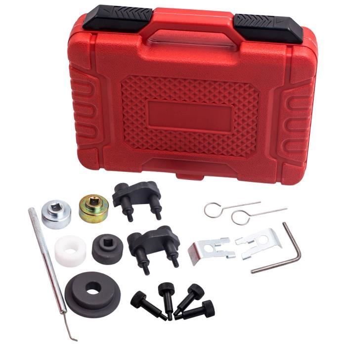 Kit Calage Distribution Kit D'outils De Calage Du Moteur Goupille De Blocage De Pignon D'arbre Coffret Professionnel VW Audi Seat Kit d'outils complet pour vérifier et régler les temps de contrôle sur les moteurs 1., 8 et 2., 0 TSI/TFSI/FSI EA888., Outils de comparaison OEM inclus – notamment T10355, T10368, T40196, T40267, T40271, T10352, etc. Compatible avec de nombreux véhicules VAG : Audii, VW, Seat, Skoda avec moteurs EA888 de 2006 à 2013. Parfait pour les ateliers professionnels et les bricoleurs amateurs – Ajustement précis, matériau durable Kit d'outils complet pour vérifier et régler les temps de contrôle sur les moteurs 1.8 et 2.0 TSI/TFSI/FSI EA888. Outils de comparaison OEM inclus – notamment T10355, T10368, T40196, T40267, T40271, T10352, etc Compatibilité du véhicule (2006-2013) : Pour Audi : A3, A4, A5, A6, Q5, TT Roadster, Allroad. Compatible avec de nombreux véhicules VAG : Audii, VW, Seat, Skoda avec moteurs EA888 de 2006 à 2013., Parfait pour les ateliers professionnels et les bricoleurs amateurs – Ajustement précis, matériau durable. Outillage Mécanique Tfsi Kit Outils Réglage Distribution VW Audi 1) Années compatibles : 2006-2013., Matériau : acier à outils trempé Emballage : coffret de rangement inclus Kit d'outils de réglage du moteur / outil de blocage - pour VW pour Audi pour Seat pour Skoda - 1., 8 et 2., 0 TSI TFSI FSI (EA888, 2006-2013) Contenu de la livraison (comme OEM) : Outil de maintien de vilebrequin (T10355) - Pièce de pression pour vilebrequin (T10368) 4 boulons de blocage d'arbre à cames (T40196). Outil de valve d'arbre à cames (T10352, T10352/1, T10352/2). 2 goupilles de blocage (T40011). Goupille de blocage (T10060A). Pour Seat : Altea, Leon, Exeo. Pour Volkswagen : EOS, GTI, Jetta (GLI, Sportswagen), Passat (B6, CC, Sedan, Wagen), Tiguan, Tiguan 4Motion. 2 outils de blocage de roue de chaîne (T40271, T20208).