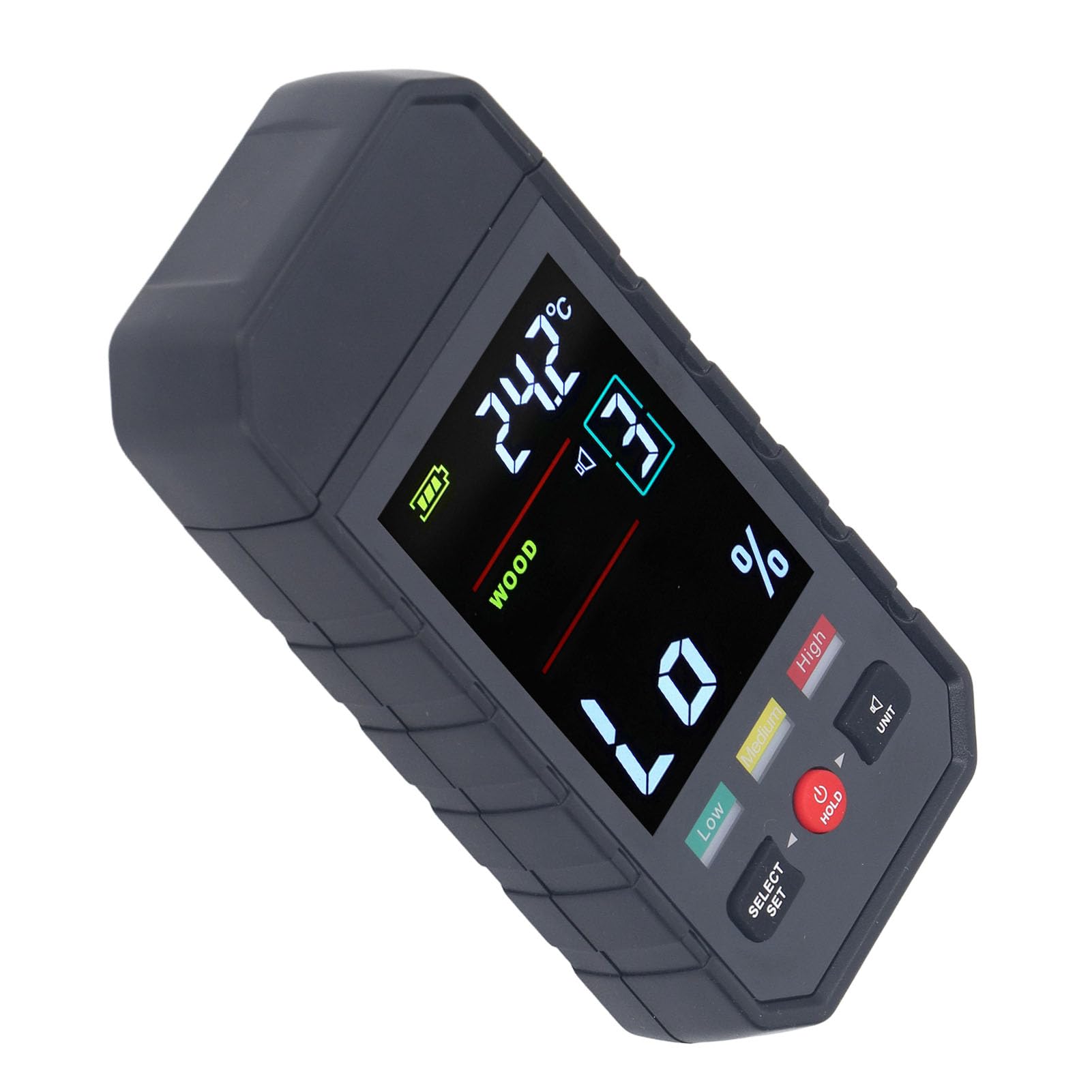 [Conception ergonomique] Le testeur d'humidité du bois présente une conception ergonomique, offrant une manipulation confortable et une facilité d'utilisation pendant de longues périodes. [Matériau ABS] L'humidimètre pour bois adopte un matériau ABS robuste pour une utilisation , compact et léger, ce qui en fait un compagnon pratique pour le travail du bois ou les travaux de construction. [Affichage clair] Équipé d'un écran rétroéclairé, ce détecteur numérique de teneur en eau du bois garantit que les résultats de mesure sont clairement visibles même dans des environnements à faible luminosité. SMART SENSOR portable Mini bois humidimètre numéri... - Grandado [Humidimètre à broche] L'humidimètre à bois à broche offre une réponse rapide et une mesure précise, vous permettant de déterminer rapidement les niveaux d'humidité dans le bois. Humidimètre pour bois,pour inspection de l'humidité des murs en bois,jauge d'humidité précise pour le travail du bois,testeur de fuite d'eau numériqu Détecteur Humidité Bois Plage 70 Humidimètre Broche Humidimètre Pour Bois, Capteur D'humidité Murale, Humidimètre Broche Detecteur Humidite Bois Numerique 2. [Plages de mesure polyvalentes] Le testeur d'humidité du bois dispose de quatre plages de mesure, sélectionnant de l'utiliser en fonction des différents types d'arbres. 3. Écran clair : équipé d'un écran rétroéclairé, ce détecteur numérique de teneur en eau du bois garantit que les résultats de mesure sont clairement visibles même dans les environnements de faible luminosité