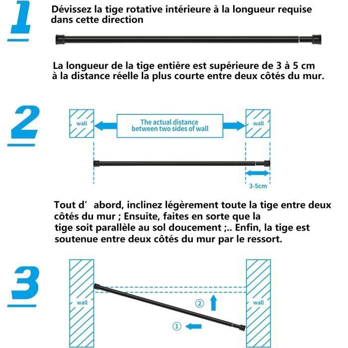 S'enlève sans laisser de résidus - 0 traces ! EN STOCK : Tringle à rideau sans perçage pas cher. Grand choix, promos permanentes et livraison rapide partout en France. Paiement sécurisé Pourquoi choisir notre rideau tendeur ? Montage sans perçage : protège les murs, 0 % de dommages. Protège le carrelage, le papier peint, le bois et le verre. Pour une stabilité maximale. Parfait pour les appartements en location, 100 % sans dommage Robuste et durable : construction en acier, capacité de charge de 10 kg. Peut supporter des rideaux lourds et des bâches de douche humides (capacité de charge de 10 kg) - Pas de pliage, pas de vacillement Idéal pour les fenêtres de cuisine, salles de bains, bibliothèques - Ajustement sur mesure par simple rotation. En quelques secondes : serrez, tournez, c'est prêt. Ajustement parfait (83 à 150 cm en continu) : réglage précis en continu pour fenêtres, armoires et niches entre 83 et 150 cm. Tringle extensible sans percage au meilleur prix | Leroy Merlin Tringle à Rideau Sans Perçage Deco-Raum Lot De 2 Tringles à Rideaux Rotatives Blanc Longueur 60-100 Cm Sans Perçage Ni Vis[662 Tringle Douche Cuisine Ajustement précis : 83 à 150 cm en continu.