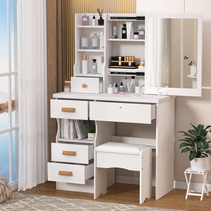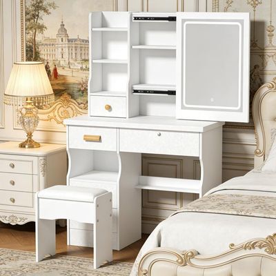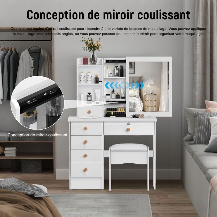 Caractéristiques Techniques : Nom de l'article : Coiffeuse avec Miroir LED Matériau : Panneaux de bois écologiques Style : Moderne et Minimaliste Fonction : Maquillage, Toilette, Rangement Installation : Assemblage requis (instructions incluses) Dimensions totales : L: 80 cm (31., 5) x P: 36., 5 cm (14., 6) x H: 130 cm (52) La Livraison Comprend : 1 x Coiffeuse 1 x Manuel d'utilisation Notes : De légères variations de couleur peuvent exister en raison des paramètres d'écran. Dites adieu aux mauvaises surprises une fois dehors. Glissez-le facilement pour maquiller sous différents angles ou ranger vos produits en toute simplicité. 【Coiffeuse avec miroir led et coiffeuse miroir led polyvalent】Le miroir à glissière équipé de LED répond à tous vos besoins de maquillage. Ne pas utiliser si les instructions d'assemblage ne sont pas comprises. Principaux points forts · Couleur. Ash(a) · Taille. 100CM · Matériau. Bois · Marque. Générique · Nombre de tiroirs. 3 · Fabricant. Generic Meuble Coiffeuse Avec Miroir Coiffeuse Avec Miroir Led Et Rangement Coiffeuse Avec Miroir, 2 Tiroirs, 3 Compartiments De Rangement, 80 X 40 X 140 Cm, SANS TABOURET, Style Moderne, Blanc | Leroy 3 couleurs de lumière réglables via un bouton tactile sensible, et la luminosité peut être ajustée en appuyant longuement. 【Coiffeuse fille idéale et coiffeuse blanche élégante】Son design épuré et moderne ajoute une touche de style à votre chambre. Elle résiste aux usages quotidiens, parfait pour un usage à long terme dans votre chambre. Tout est organisé et à portée de main. Coiffeuse Blanche Coiffeuse,Bureau Avec Miroir U00e9clairu00e9 Par LED, Coiffeuse Avec Tiroir Et Tabouret Rembourru00e9, Table De Maquillage Moderne Avec Miroir U00e0 Luminositu00e9 Coiffeuse Avec Miroir Led Et Tabouret Chambre - Literie - Chambre adulte - Coiffeuse - Coiffeuse Zelia Miroir LED Avec 1 Tiroir, Étagères, Caisson De Rangement Et Tabouret 【Coiffeuse avec rangement abondant et coiffeuse avec miroir】Imaginez ne plus chercher vos bijoux ou maquillages ! Miroir LED Glissant et Lumière Adjustable sur Mesure Le cœur de cette coiffeuse avec miroir led est son miroir. Cette coiffeuse dispose d’un espace de rangement caché derrière le miroir, 4 tiroirs spacieux avec poignées en bois (et verrou) pour vos bijoux précieux, ainsi que des étagères ouvertes et cachées pour vos cosmétiques ou vernis à ongles. Description du produit Imaginez-vous devant une coiffeuse avec miroir et tabouret, où tout est à portée de main, dans un écrin de lumière et d'ordre. Attention aux bords tranchants. 【Bureau coiffeuse easy à assembler et petite coiffeuse compacte】Toutes les pièces et accessoires sont étiquetés, avec un manuel d’installation pas à pas inclus.