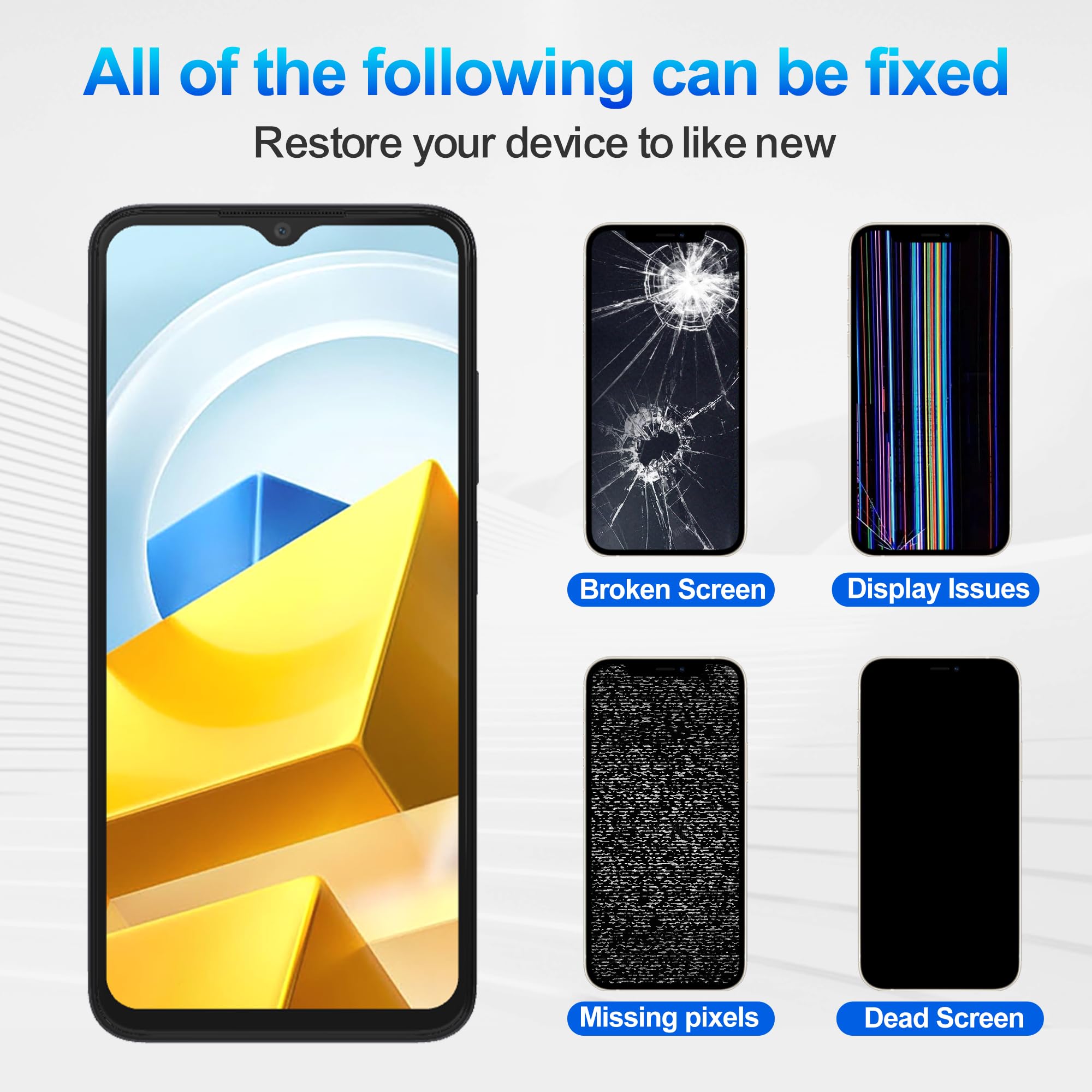 Si vous avez des problèmes avec votre commande, veuillez contacter notre service client en nous envoyant un e-mail via Amazon. Compatible : Xiaomi Poco M5 22071219CG / Poco M4 5G 22041219PG / Redmi Note 11E 22041219C / Redmi 10 5G 22041219G, 22041219NY Taille : 16,58 cm Type : LCD Résolution : 1080 x 2408 pixels. Ne tirez pas sur le câble flexible. Comment réparer : nous fournissons des outils de réparation professionnels, il n'y a pas de manuel, vous pouvez trouver des vidéos d'installation sur d'autres sites Web. Ces vis ont des tailles et des longueurs différentes. Écran LCD et enseble du nuériseur de rechange de qualité B Veuillez vérifier que la version de votre téléphone portable convient à cet écran avant d'acheter Utilisation : il peut résoudre les problèmes de l'écran cassé, le dysfonctionnement de l'écran, le dysfonctionnement de la fonction tactile, etc. Xiaomi Poco M5 6GB/128GB Verde - Teléfono móvil Ecran Redmi Note 10 5g Duotipa Pantalla LCD De 6,58" Compatible Con Xiaomi Poco M5/Poco M4 5G écran LCD Xiaomi Soyez prudent lors de l'installation, sinon l'écran sera noir, flou ou ne s'affichera pas., 5., Il n'y a pas de manuel d'utilisation, la réparation est très difficile, nous vous recommandons vivement de trouver un professionnel pour réparer, nous ne sommes pas responsables des dommages causés pendant le processus de réparation, merci de votre compréhension., 6., Nous offrons une garantie de 6 mois sur l'écran tant qu'il n'y a pas de dommages humains ou physiques à l'écran, et nous pouvons le remplacer par un nouveau s'il ne fonctionne pas correctement. Il est fortement recommandé de faire un test avant l'installation. Téléphonie - Découvrez notre offre Écran LCD 6,58" compatible avec Xiaomi Poco M5 / Poco M4 5G /Redmi Note 11E /Redmi 10 5G (noir sans cadre) Écran tactile LCD Testez avec succès et sans problème avant d'utiliser de la colle pour l'installation. Compatible avec Xiaomi Poco M5 22071219CG / Poco M4 5G 22041219PG / Redmi Note 11E 22041219C / Redmi 10 5G 22041219G, 22041219NY. Écran LCD Xiaomi Poco M5, réparez votre écran d'origine défectueux et apportez une nouvelle expérience d'écran de haute qualité. Garantie de qualité : avant l'expédition, notre équipe de contrôle de la qualité effectuera un test rigoureux, 100 % intact.